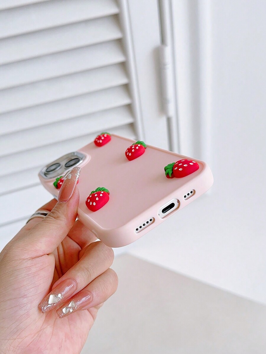 Kawaii 1pc Pink 3D Strawberry Phone Case Compatible With Apple IPhone 11 12 13 14 15 Pro Max