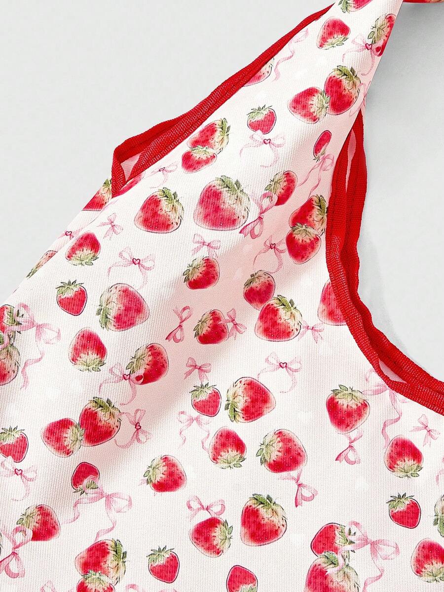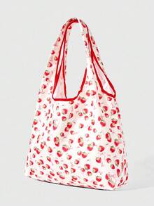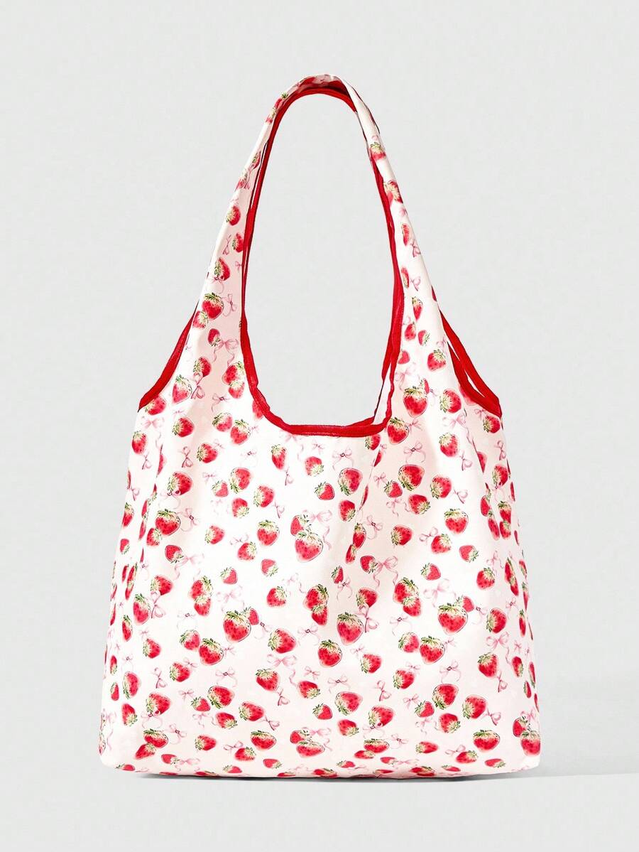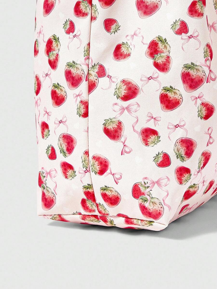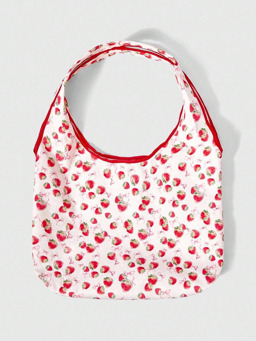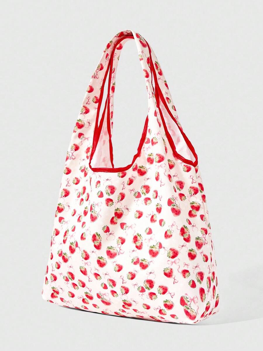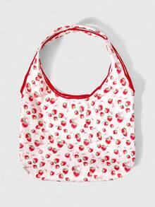 Kawaii 1pc Red Strawberry Print Fashion Portable Large Capacity Women Shoulder Bag 1585156