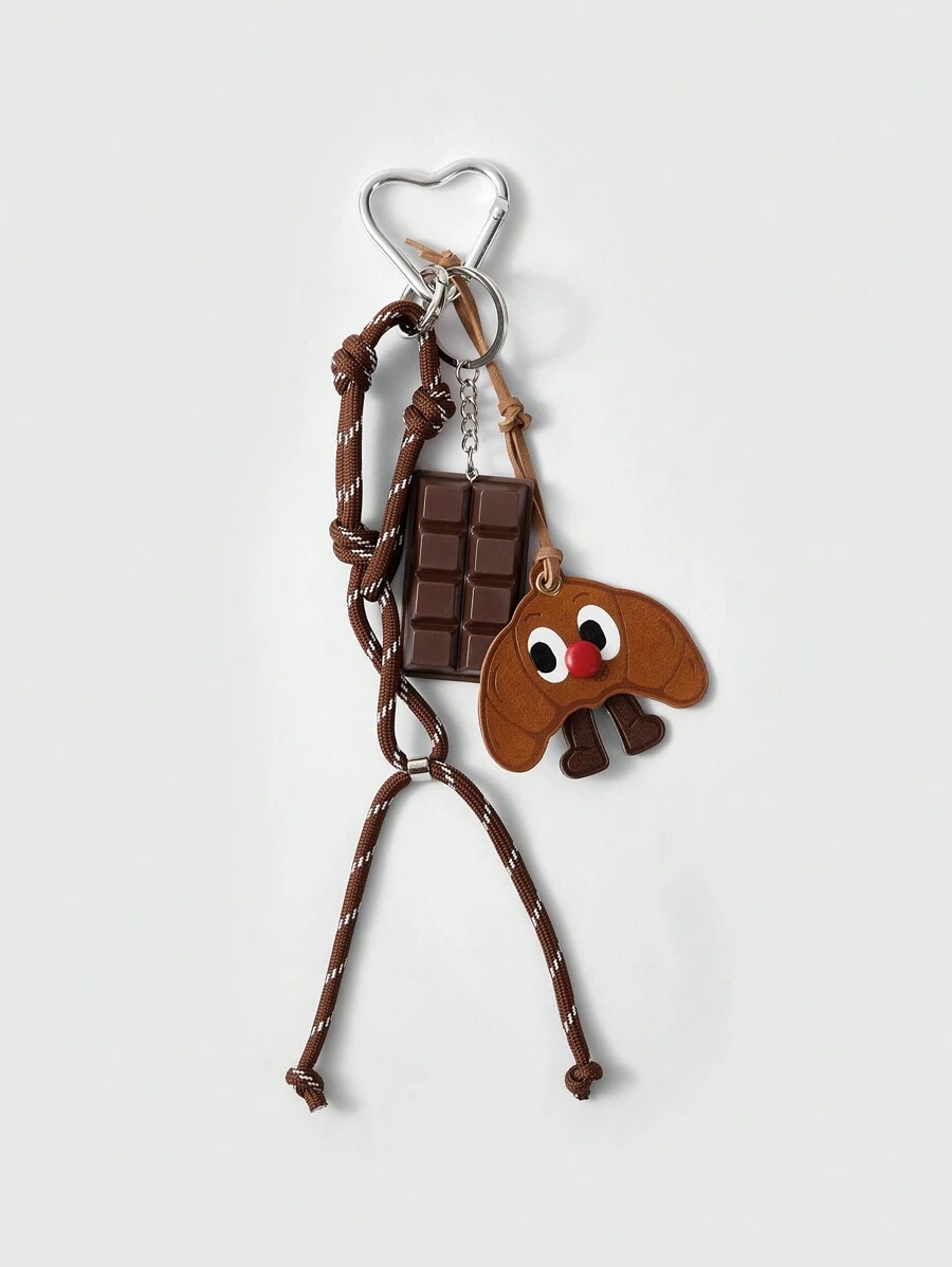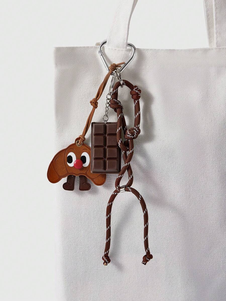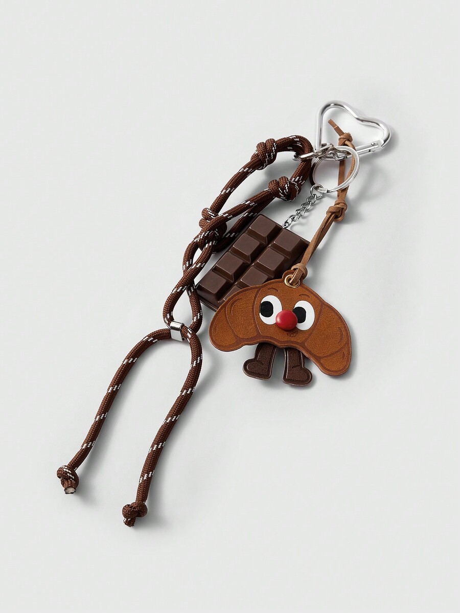Kawaii 1pc Retro Cow Horn Shaped Chocolate Braided Rope Bag Pendant