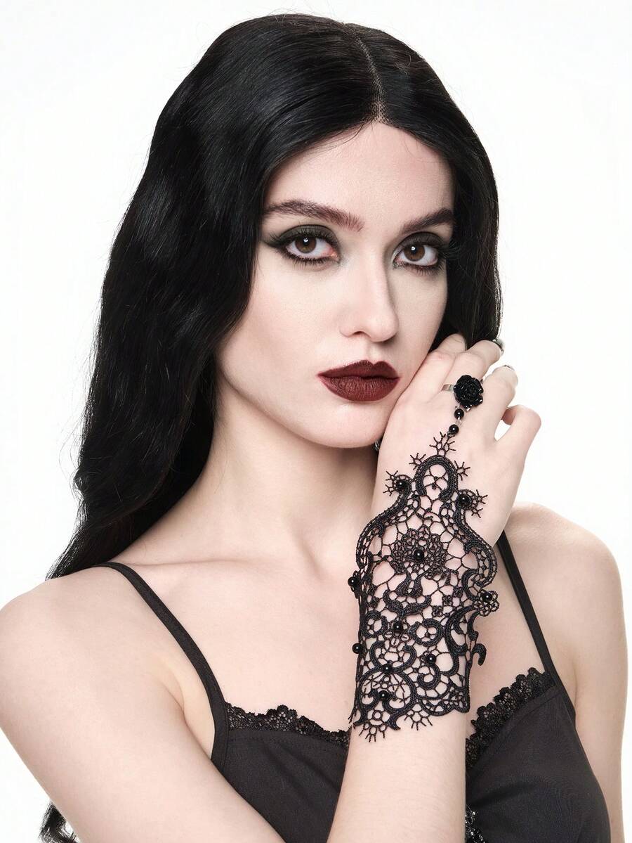 Kawaii 1pc Rose Bride Black Vintage Palace Style Lace Ring Glove