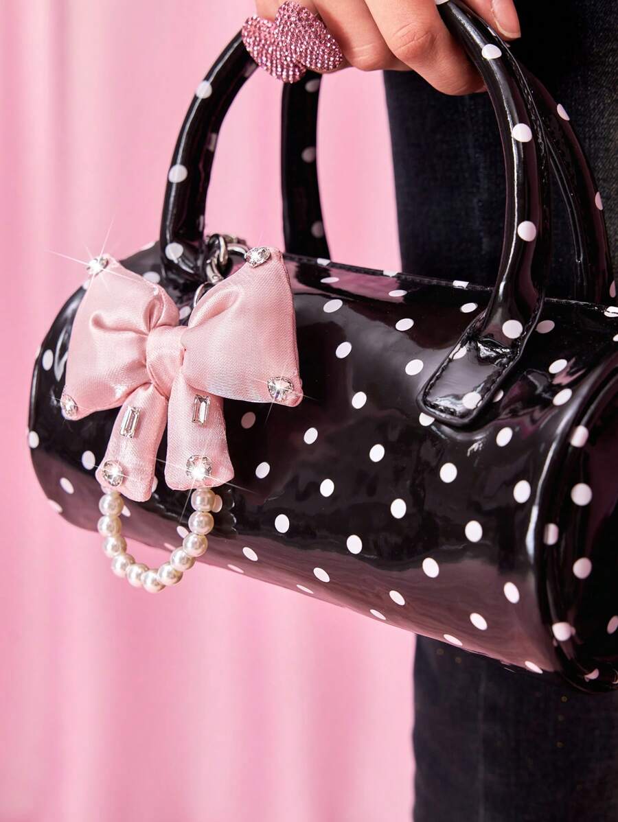 Kawaii 1pc Satin Bow Keychain, Pearl Beaded Bag Charm, Rhinestone Heart Mobile Phone Charm, Versatile Elegant Accessories