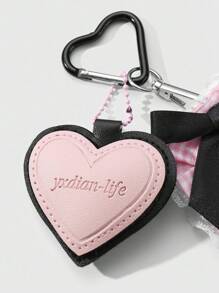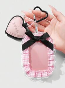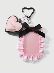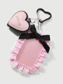 Kawaii 1pc Style Sweet & Chic Elegant Pink Leather Letter Heart Plaid Lace Ribbon Bow Card Holder DIY Keychain Bag Charm, Suitable For Office Workers, Students, Daily Wear, Holiday Gift
