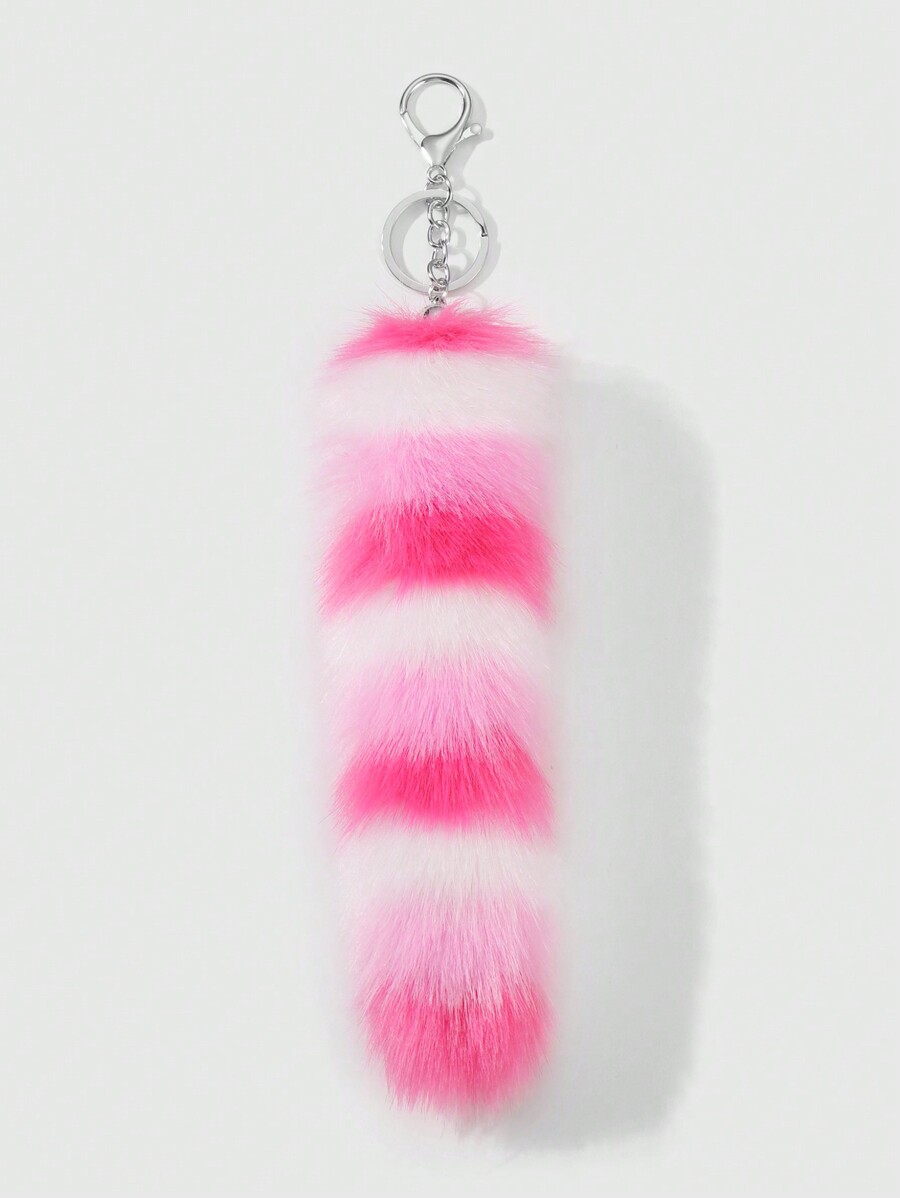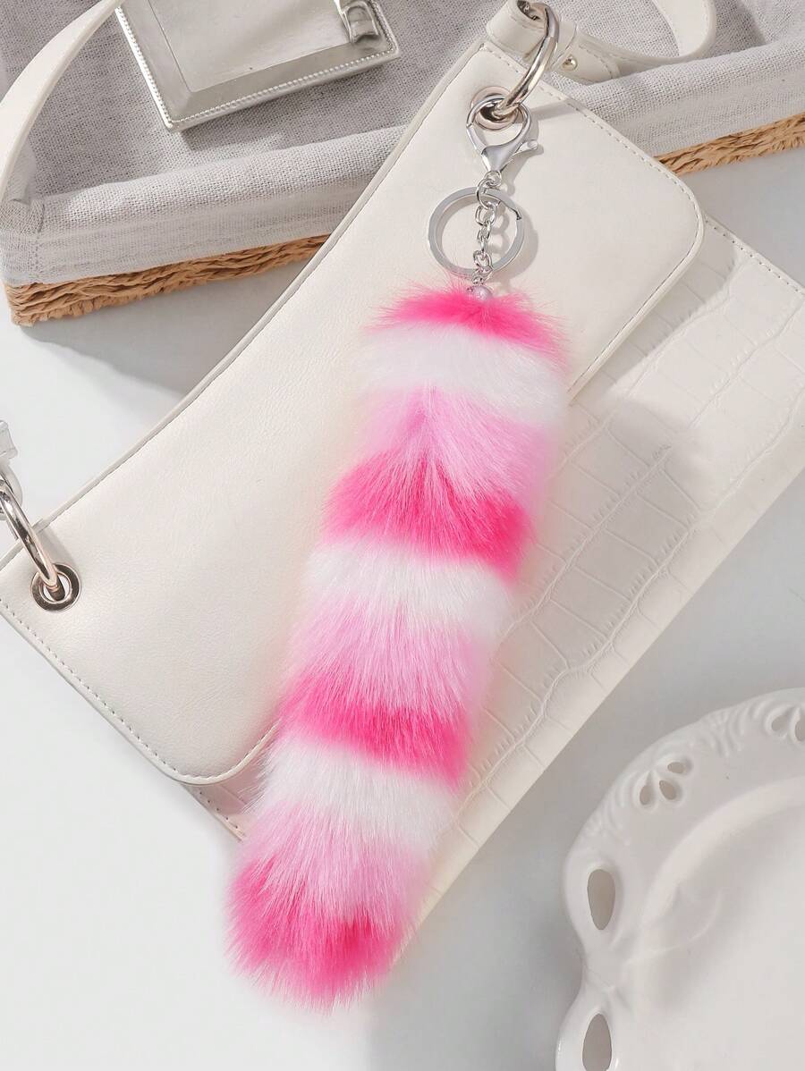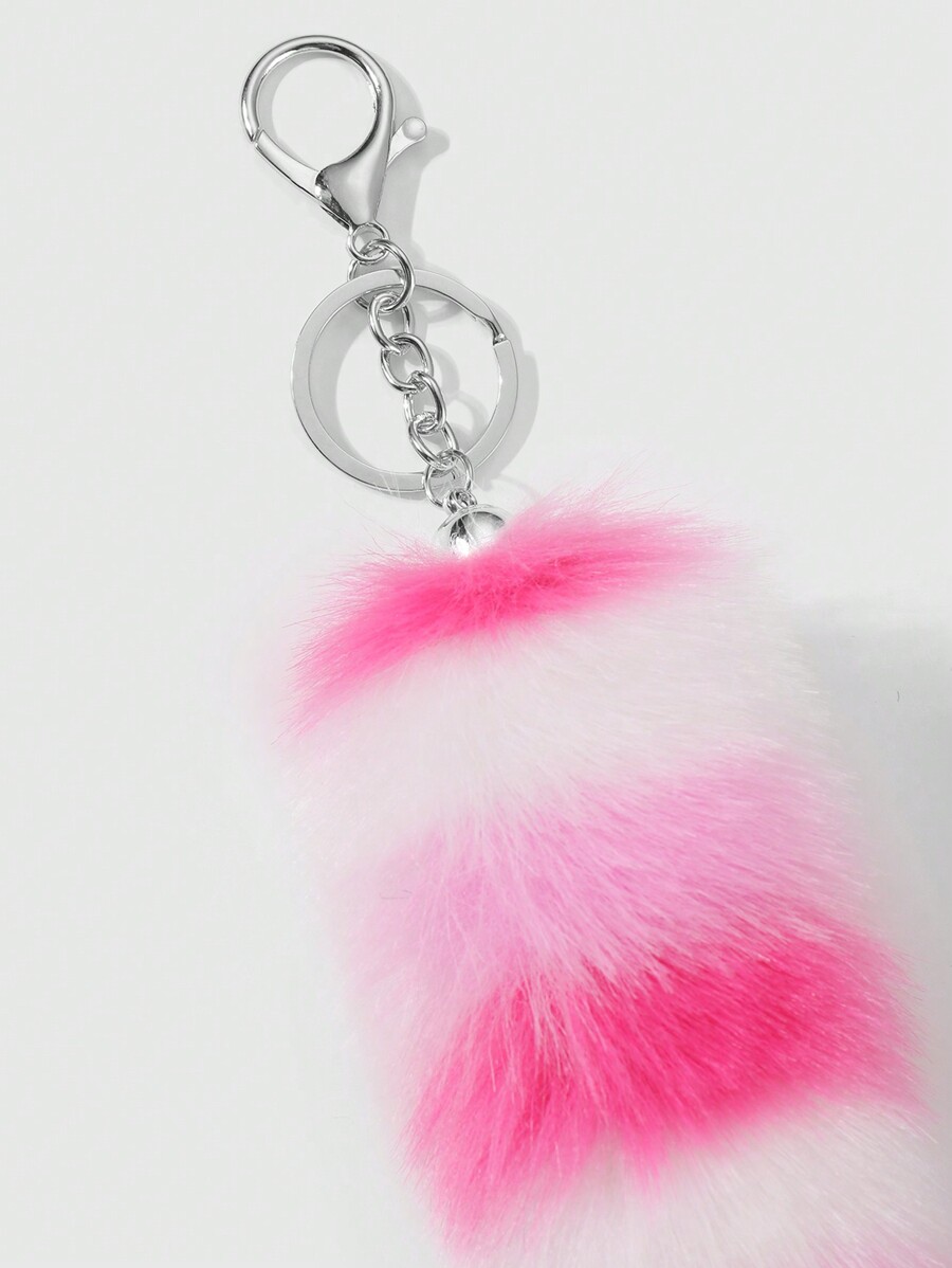 Kawaii 1pc Stylish Cute Faux Fur Pompom Keychain, Sweet Young Girl Style, Versatile & High-End, Pink & White, Suitable For Women, Daily Wear Or Gift, Holiday Gift