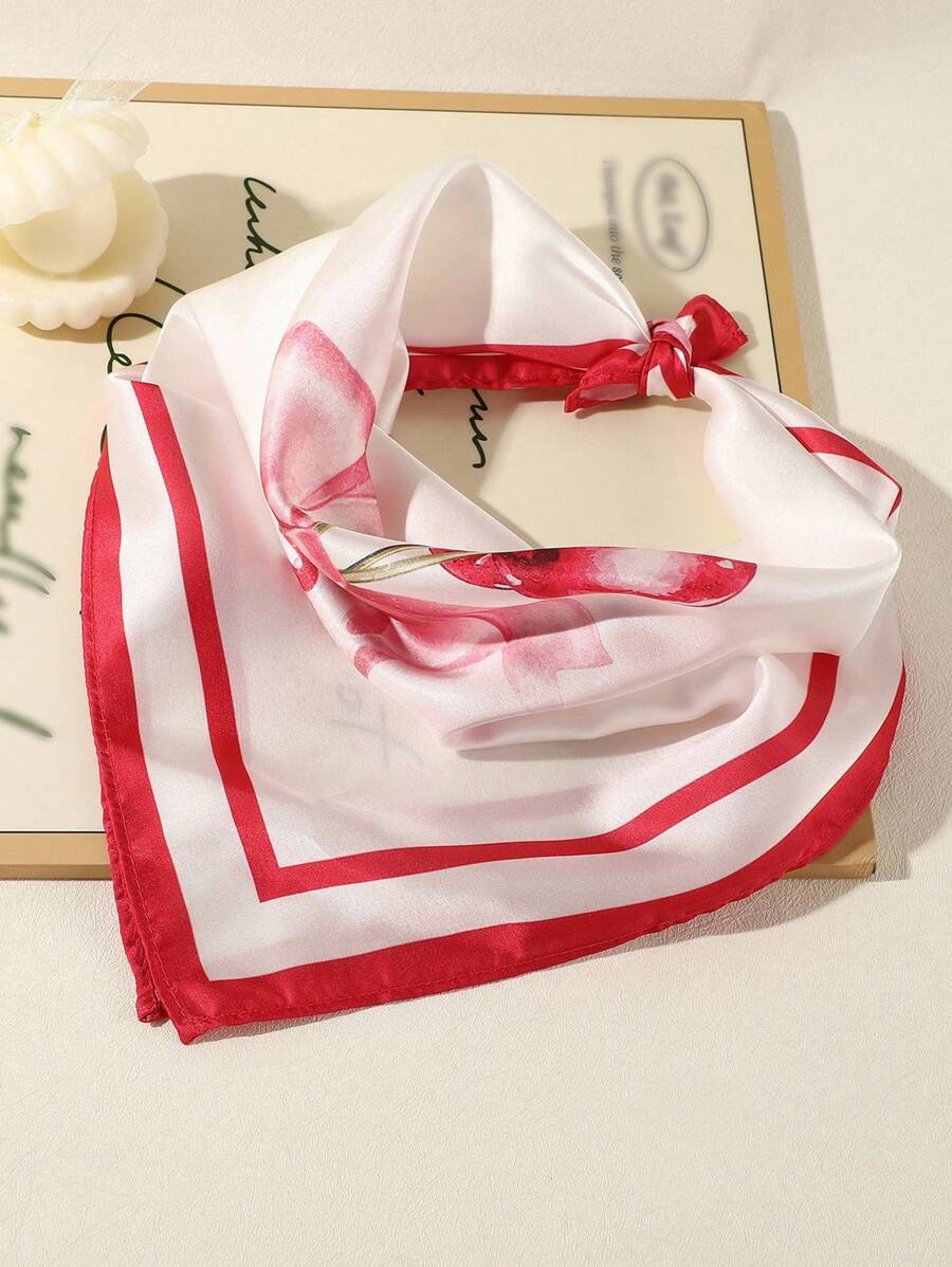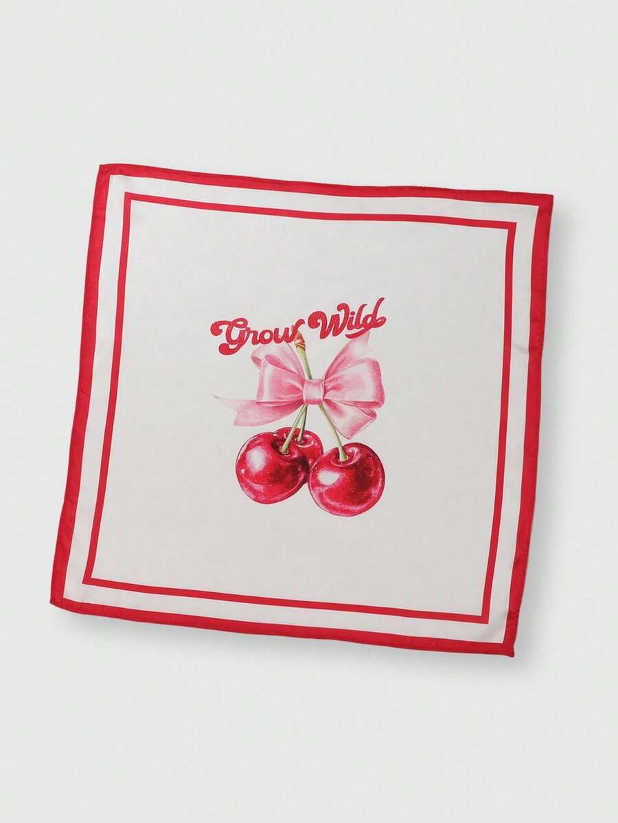 Kawaii 1pc Sweet Cherry Print Versatile Scarf, Suitable For Daily Life, Vacation, Decorative Styling, Accessory For Women