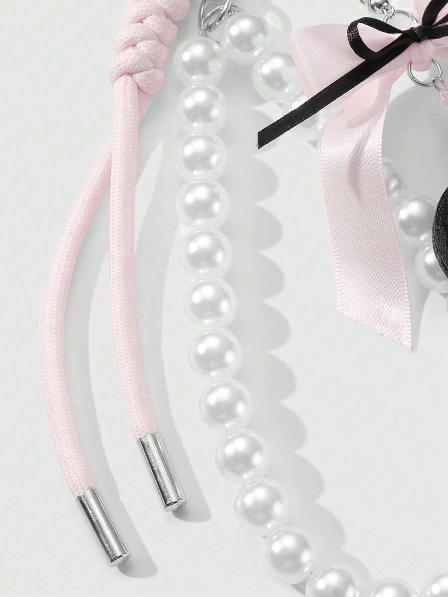 Kawaii 1pc Sweet & Cool Girls Handmade Beaded White Faux Pearl Bow Leather Reversible Letter Heart Mountain Rope DIY Keychain & Keyring, Fashionable Accessory For Women, Suitable For Daily Wear, Holiday Gift