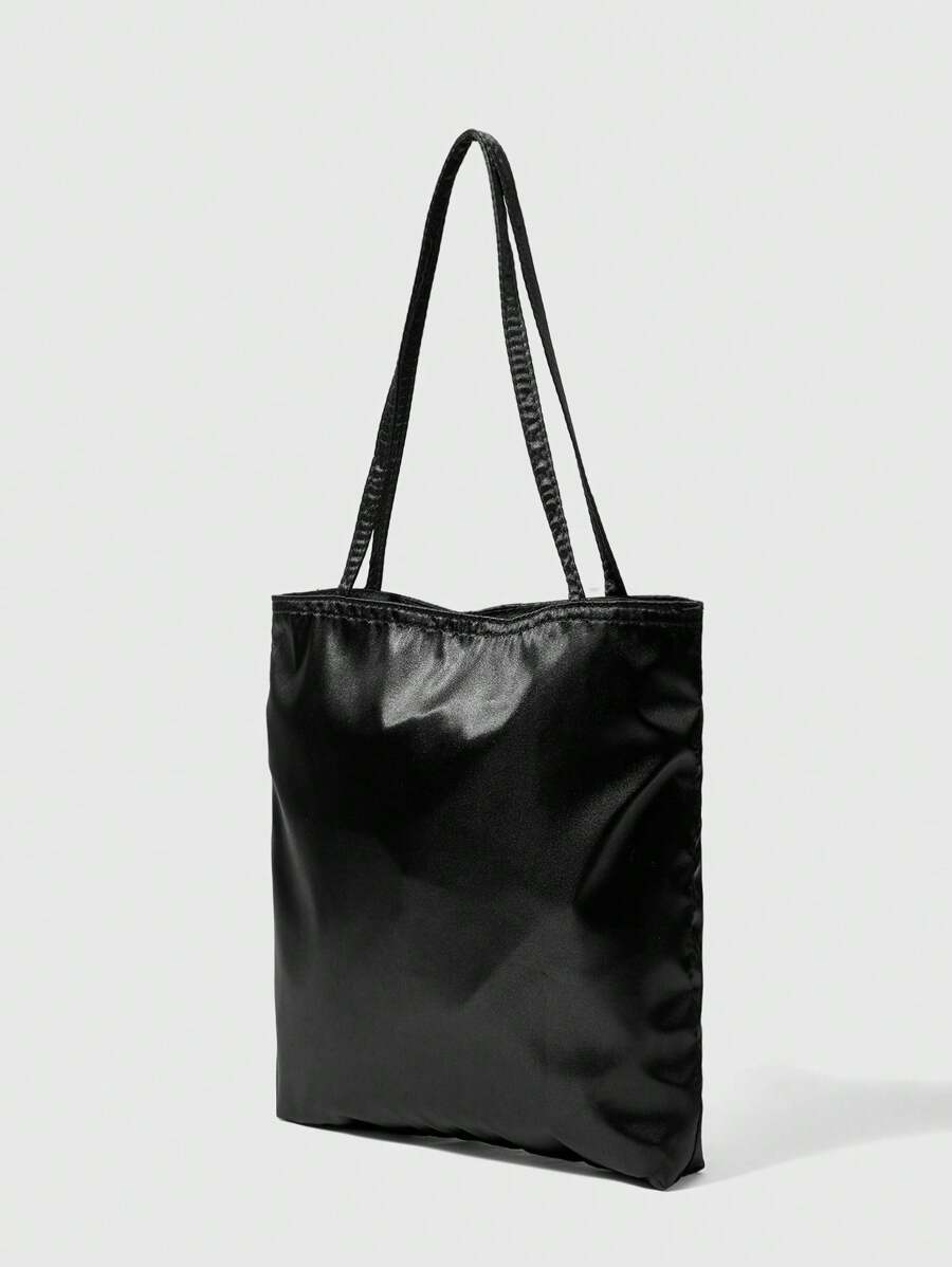 Kawaii 1pc Women Black Satin Tote Bag With Rhinestone Fallen Angel Pattern