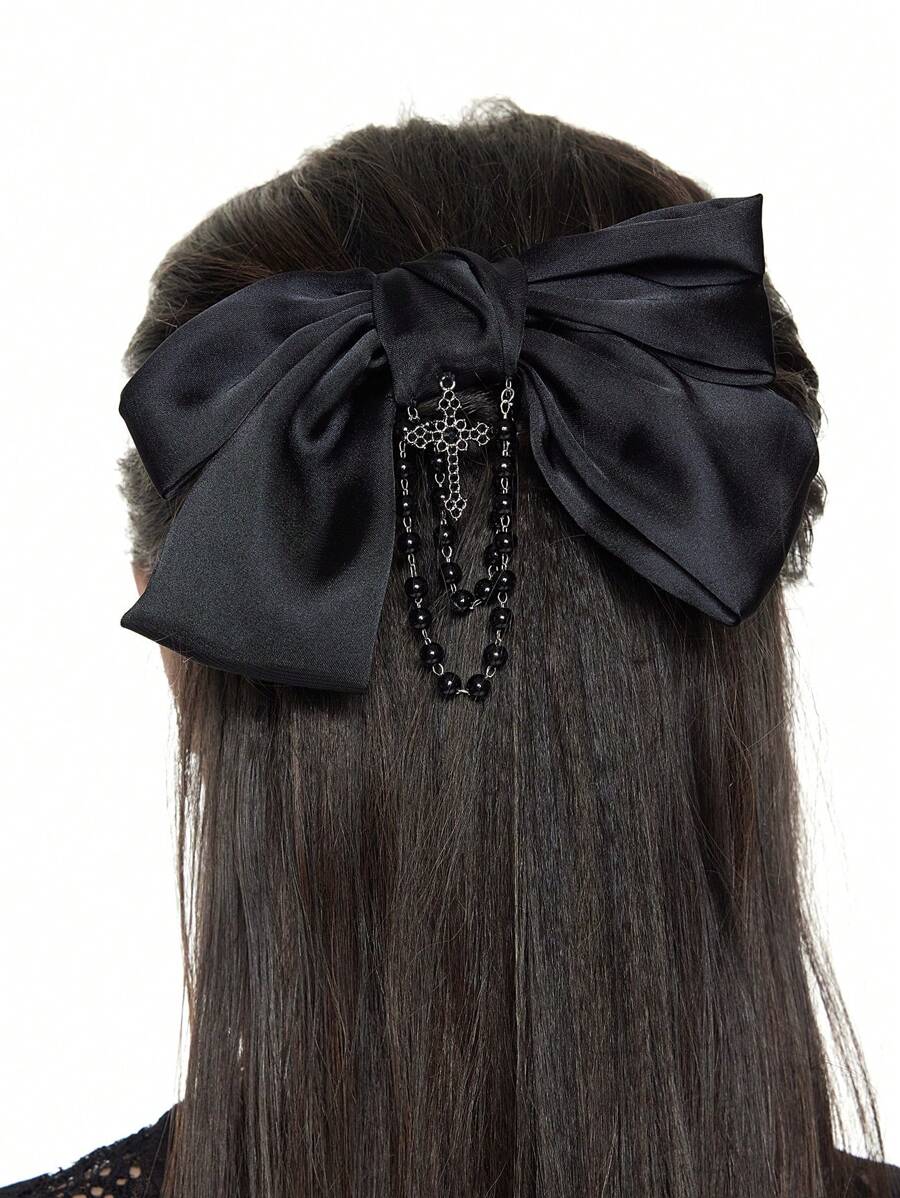 Kawaii 1pc Women Cross Chain Bow Hair Clip