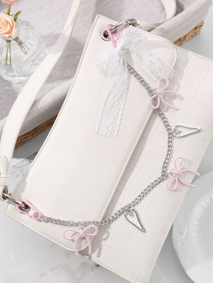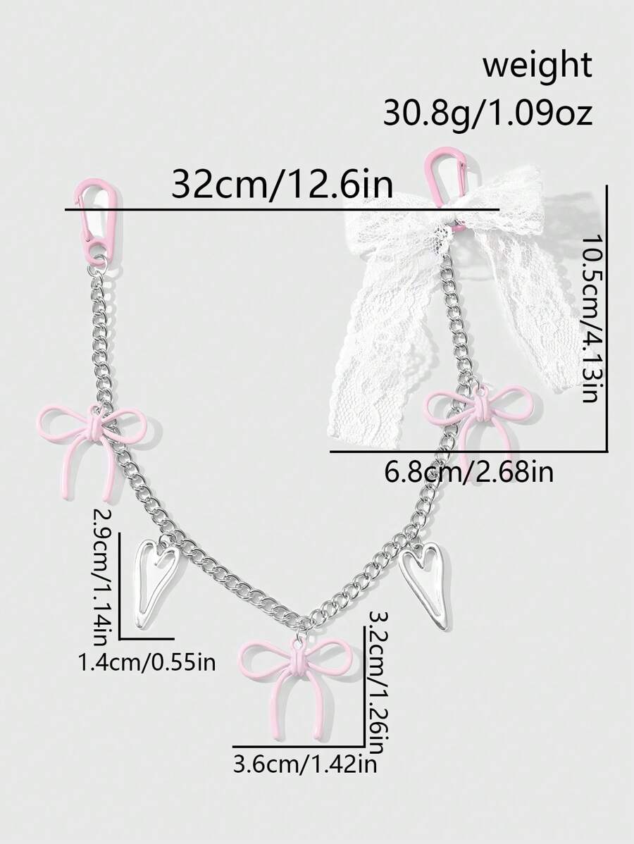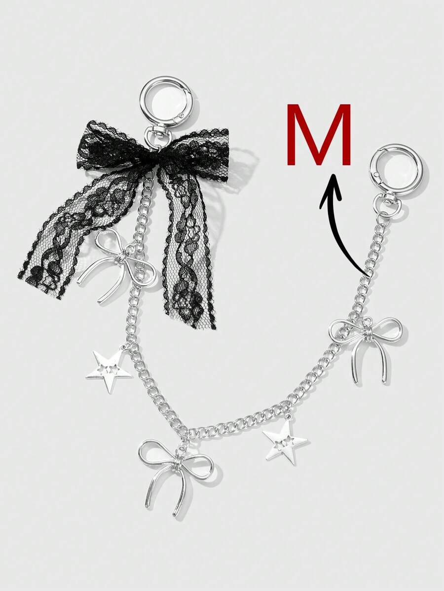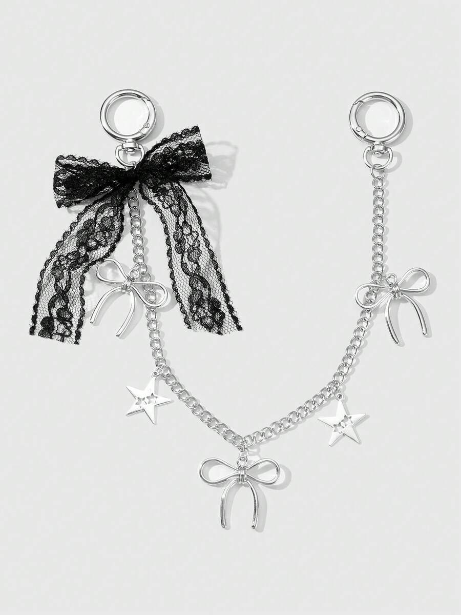 Kawaii 1pc Y2K Luxurious Elegant Gothic Style Black+Pink Lace Trim Chain Acrylic Bow Star Heart Pendant Keychain Bag Charm, Suitable For Women And Girls, Perfect Gift