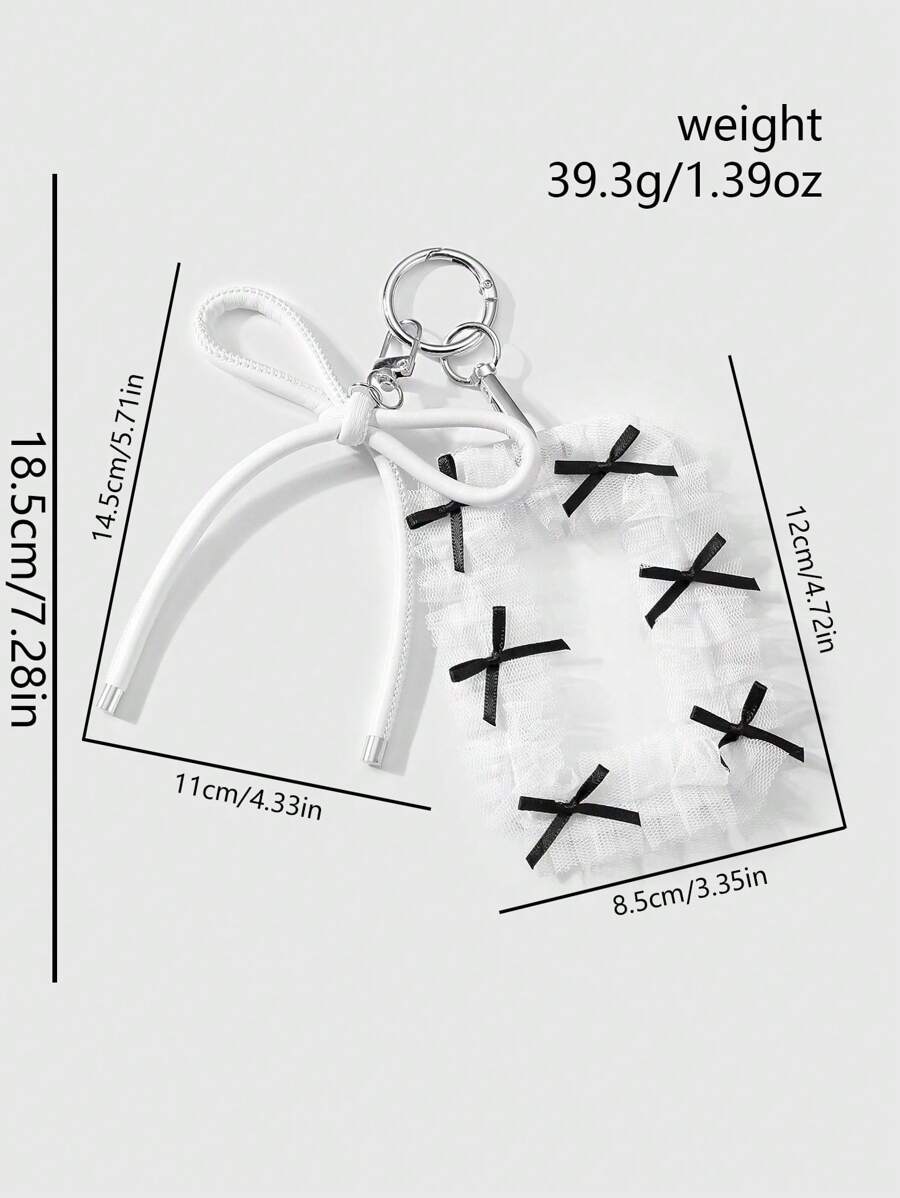 Kawaii 1pc Y2K Style Refined Minimalist Sweet Goth White Leather Strap Bow Lace Edge Card Holder, DIY Keychain Bag Charm, Suitable For Office Worker, Student, Daily Wear, Holiday Gift