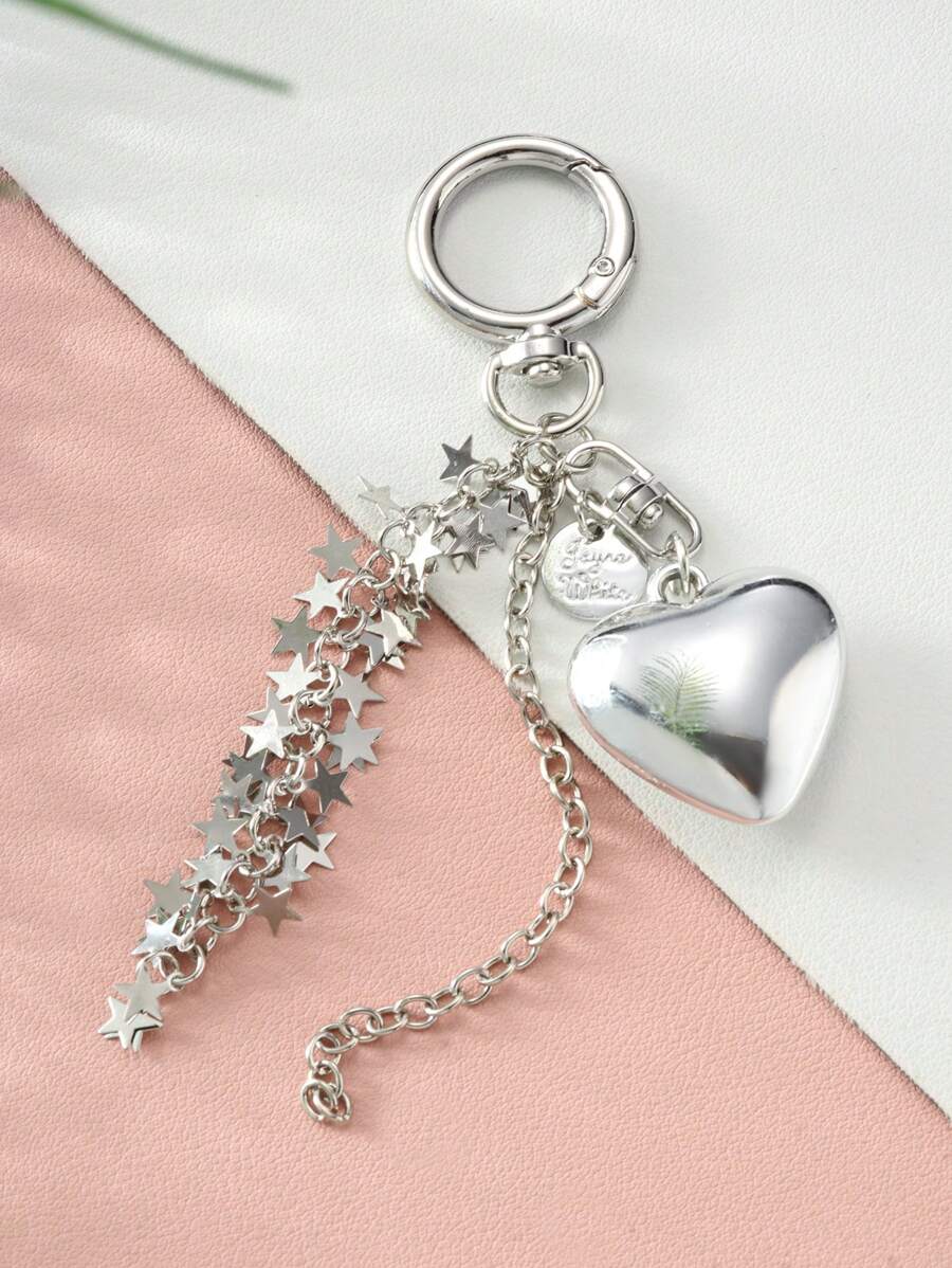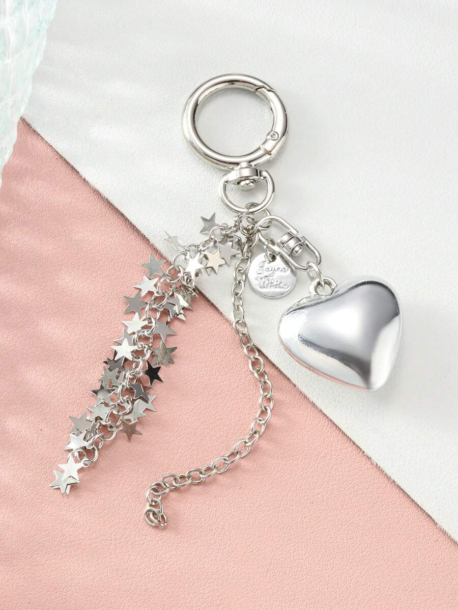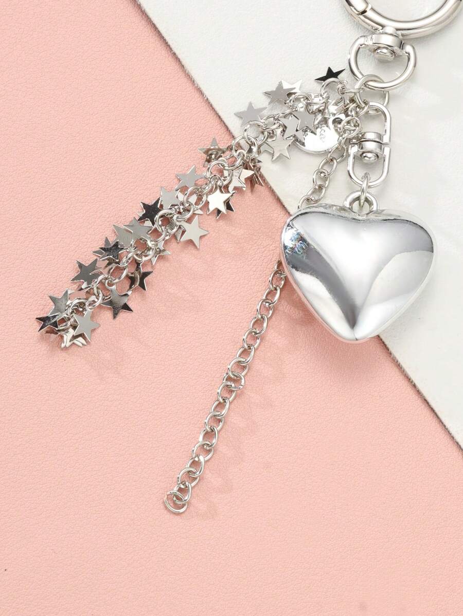 Kawaii 1pc Y2K Style Silver Heart & Star Chain Tassel Bag Charm, Suitable For Holiday, Friends, Partners, And Everyday Use