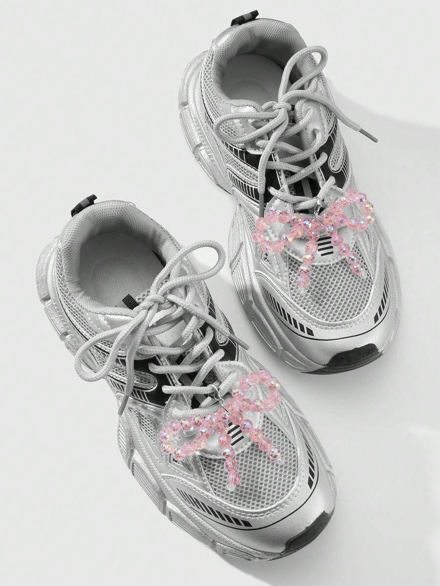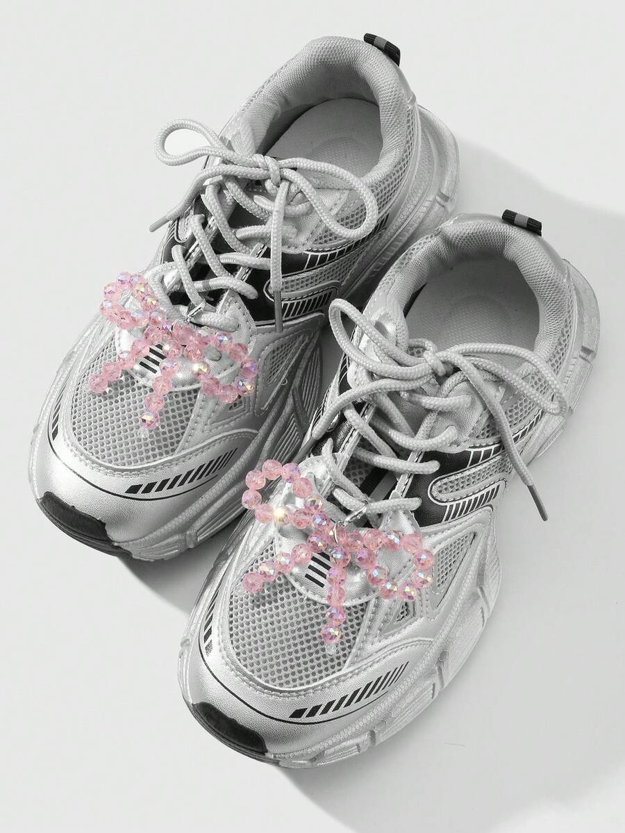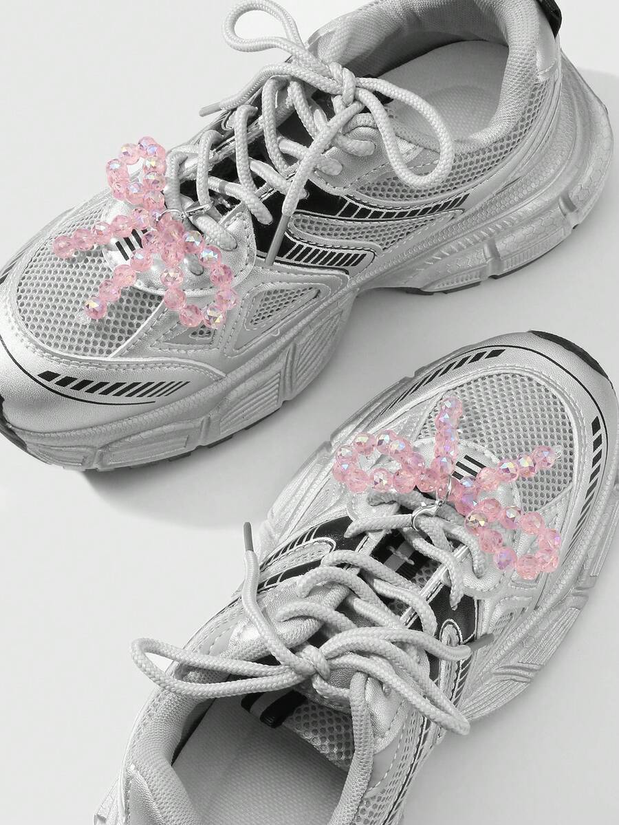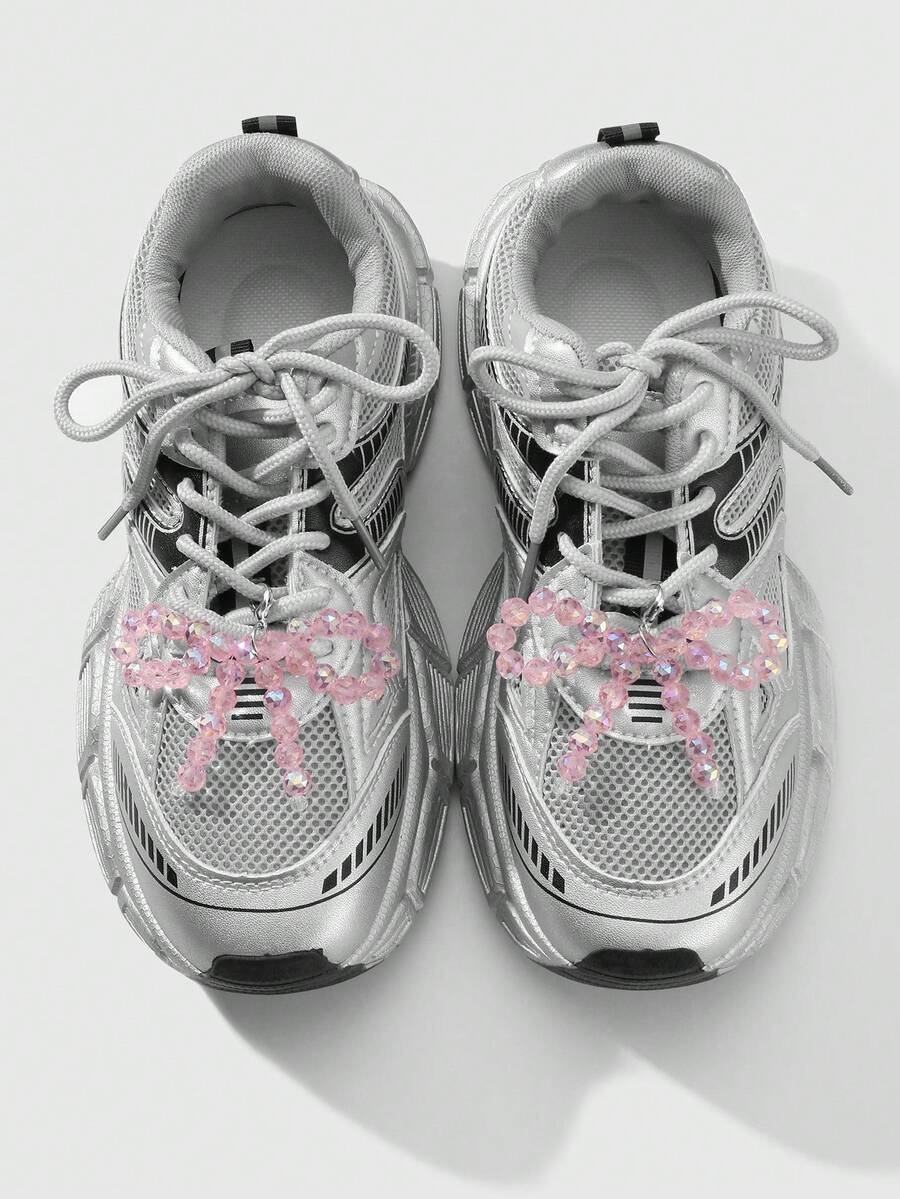 Kawaii 2 Sets Handmade Beaded Pink Crystal Bow DIY Shoe Charms, Fashionable Versatile Decorations Suitable For Women, Girls And Daily/Holiday Gifts