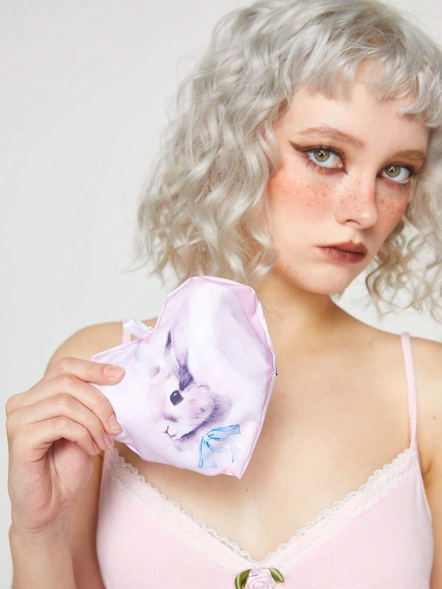 Kawaii 2pcs Cartoon Rabbit Design Set, Storage Pouch, Coin Purse, Large Capacity, Foldable Shopping Tote Bag