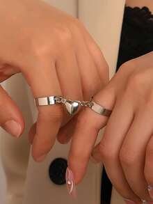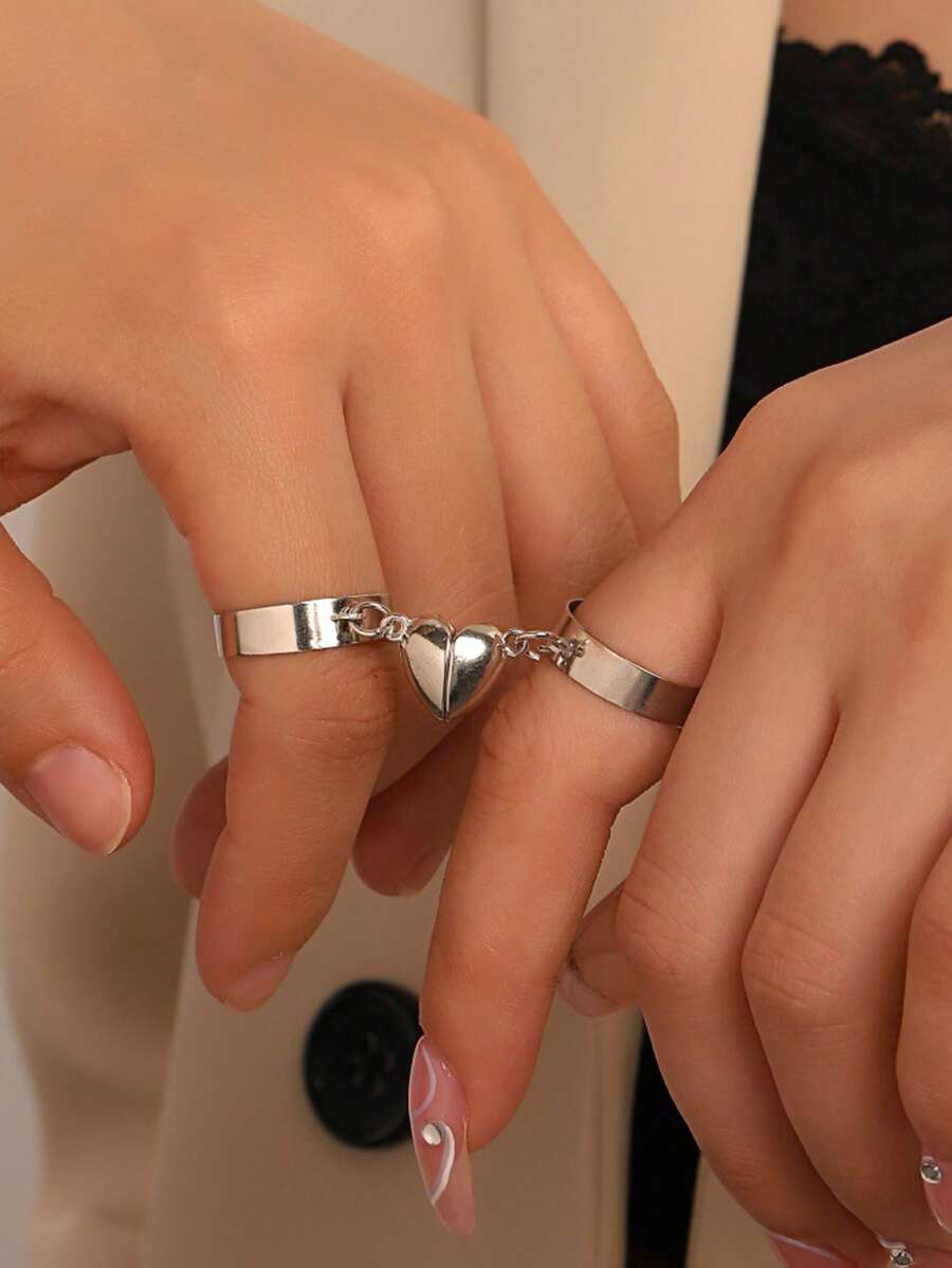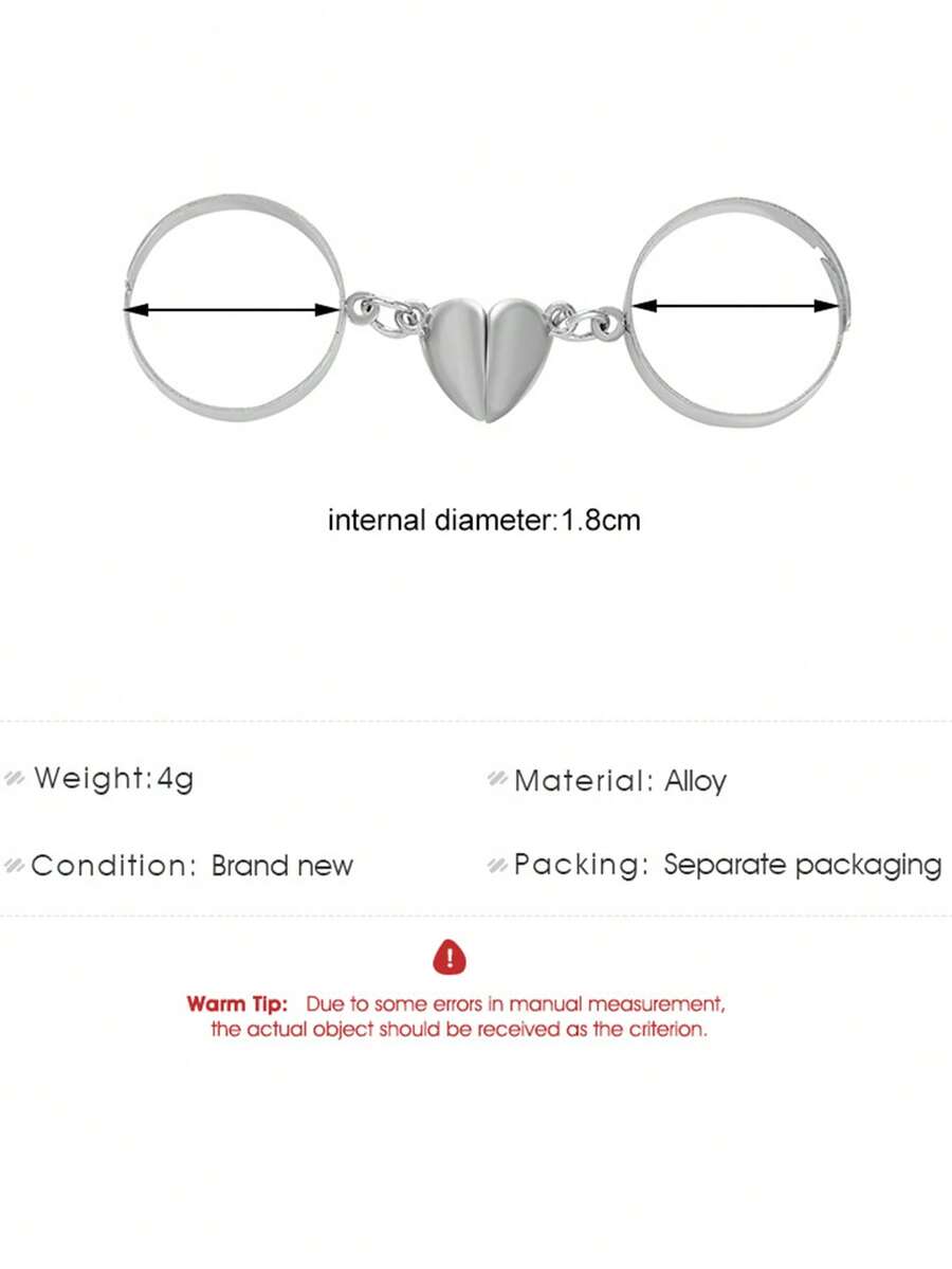Kawaii 2pcs Couple Magnetic Heart Charm Ring