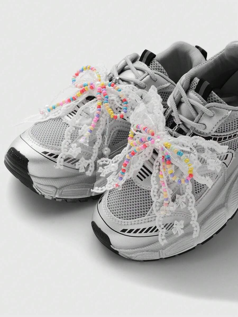 Kawaii 2pcs Minimalist Chic Fashion Versatile High-End Handmade Beaded Colorful Pearl, Crystal, Lace Bow DIY Shoe Clips, Decorations Suitable For Women, Everyday Wear, Gifts