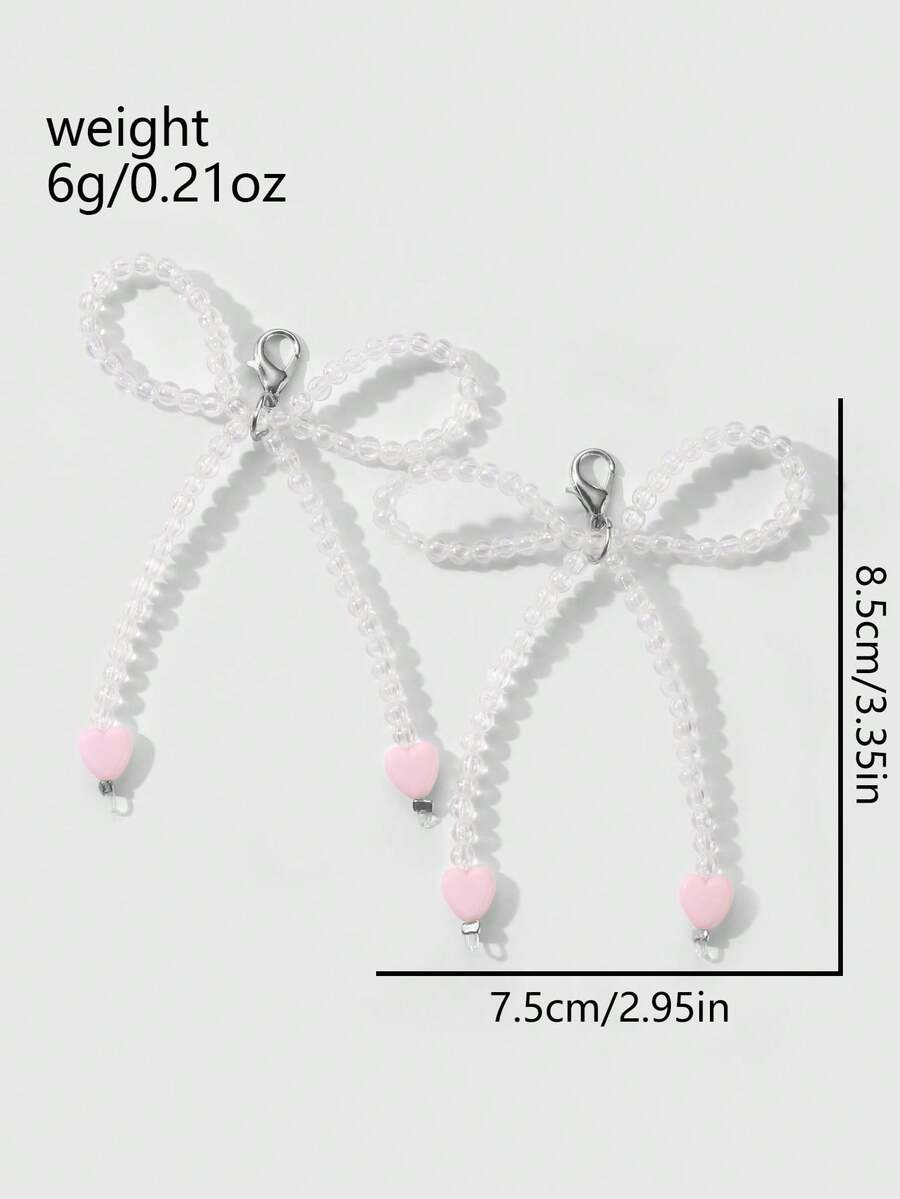 Kawaii 2pcs/Set Handmade Beaded Transparent Crystals Heart & Bowknot Shoe Clips, Minimalist And Stylish, Versatile Accessory, Suitable For Women & Girls, Ideal For Daily Wear And Gifts