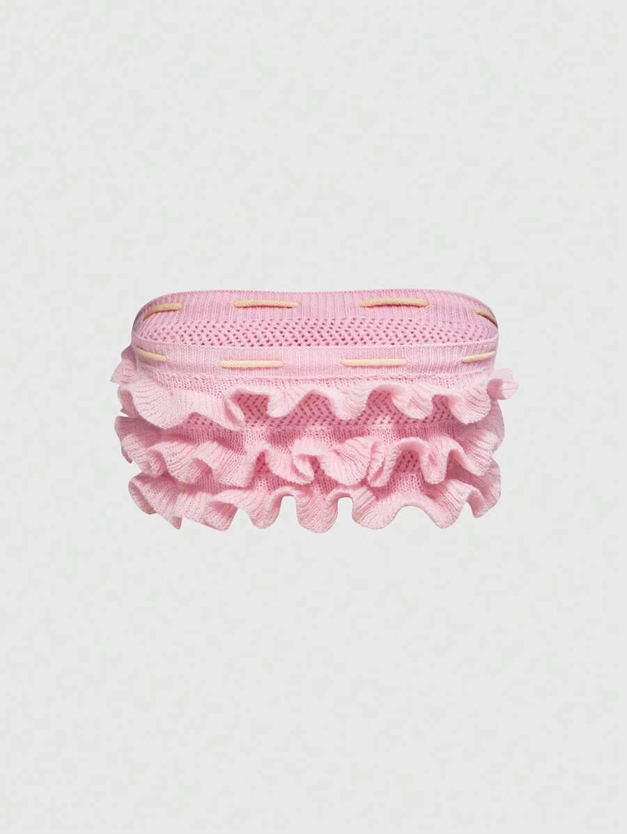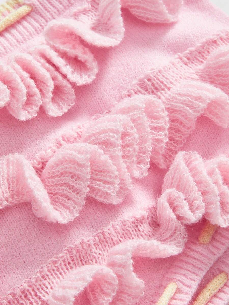 Kawaii 2pcs Set: Vintage Y2K Style Ruffle Hem Shorts & Sweet Women Sweater