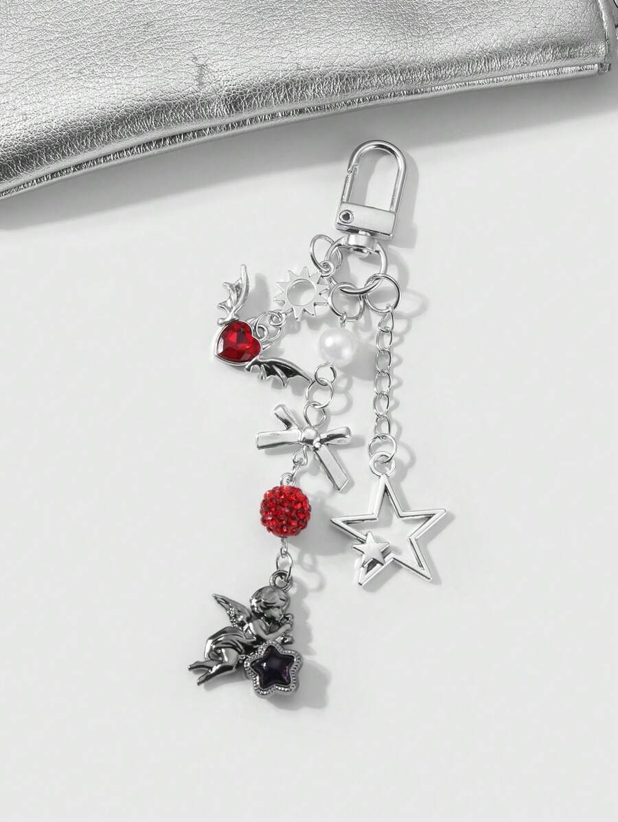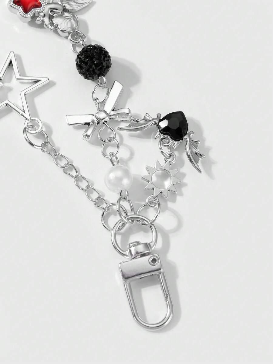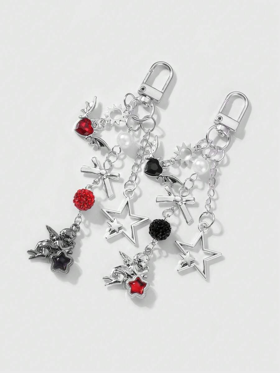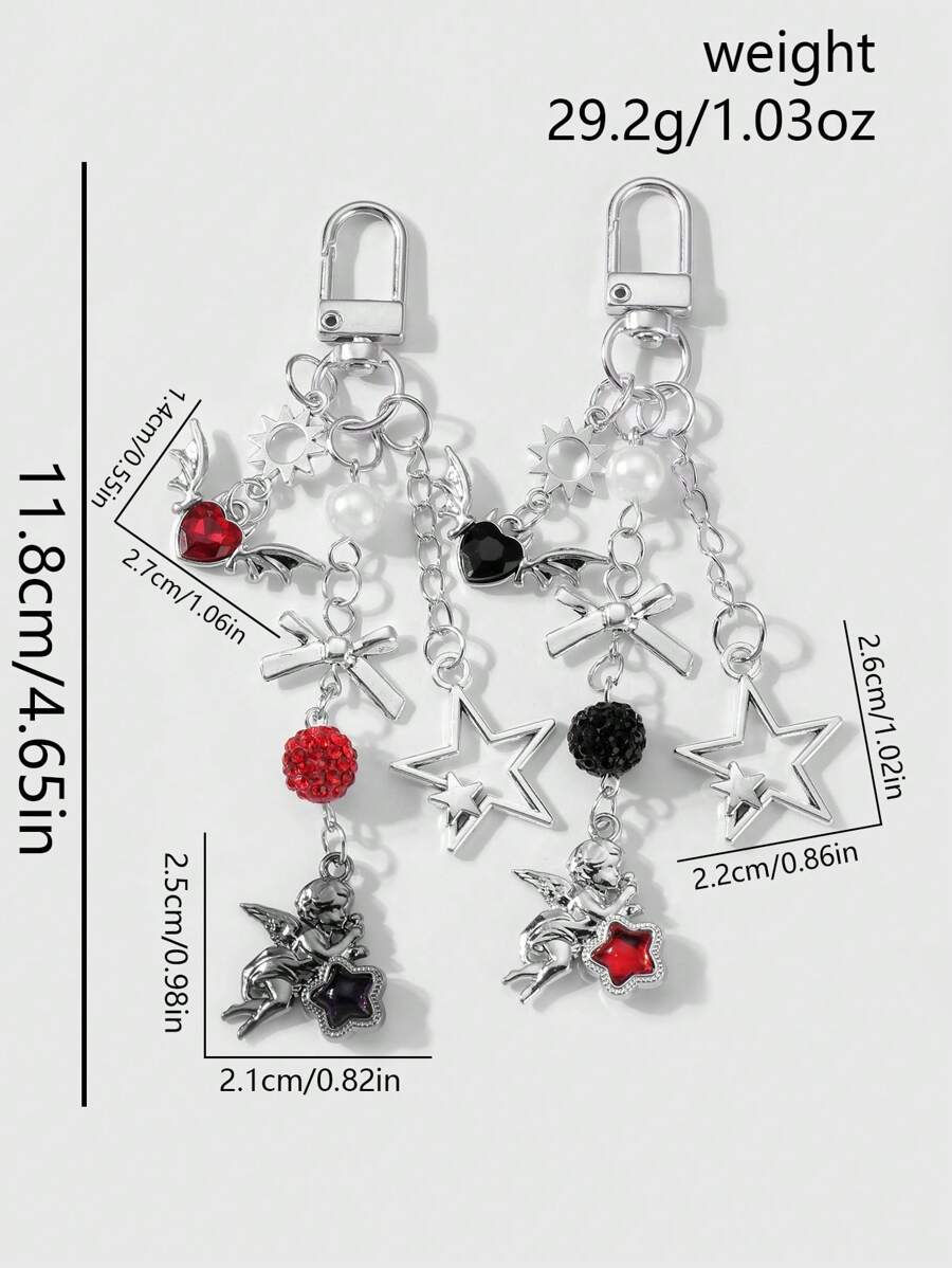 Kawaii 2pcs Y2K Fashion Exquisite High-End Silver Chain Hollow Star, Sun, Bowknot, Wing, Heart-Shaped, Crystal Ball Angel Pendant Combo Set, Suitable For Couples, Sisters, Best Friends Daily Wear, Holiday Gift