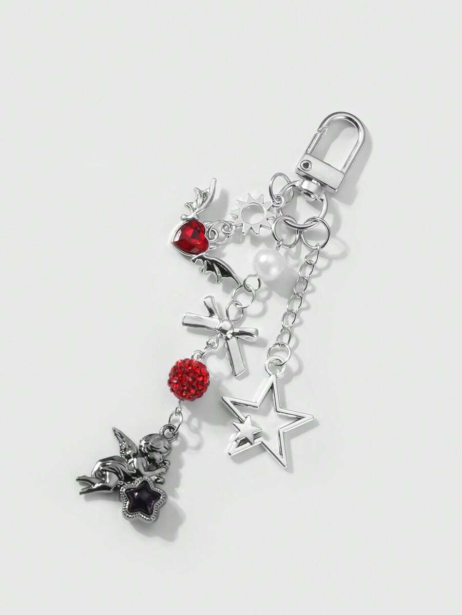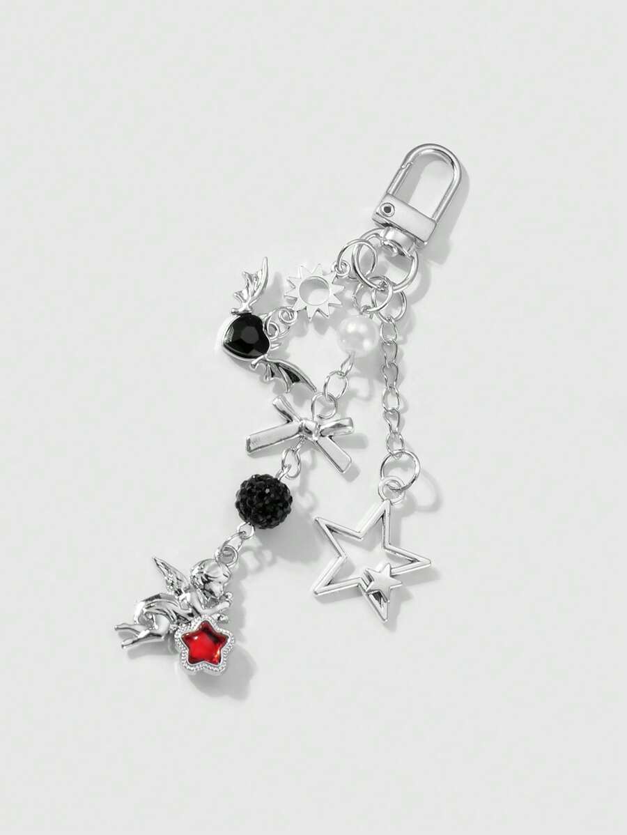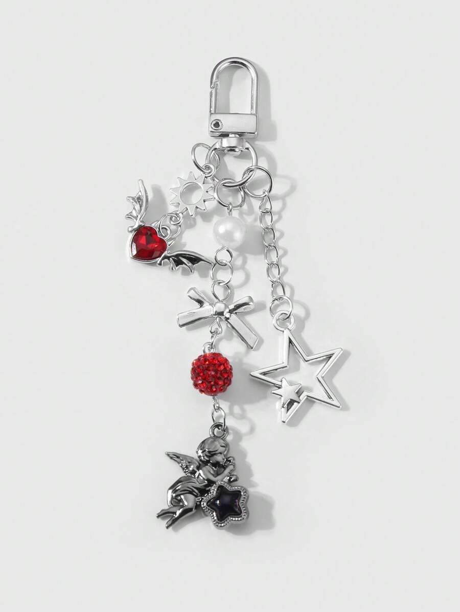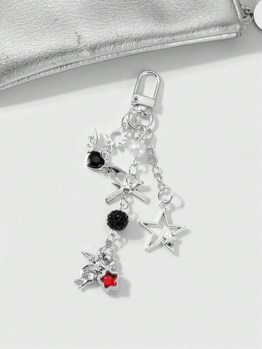 Kawaii 2pcs Y2K Fashion Exquisite High-End Silver Chain Hollow Star, Sun, Bowknot, Wing, Heart-Shaped, Crystal Ball Angel Pendant Combo Set, Suitable For Couples, Sisters, Best Friends Daily Wear, Holiday Gift