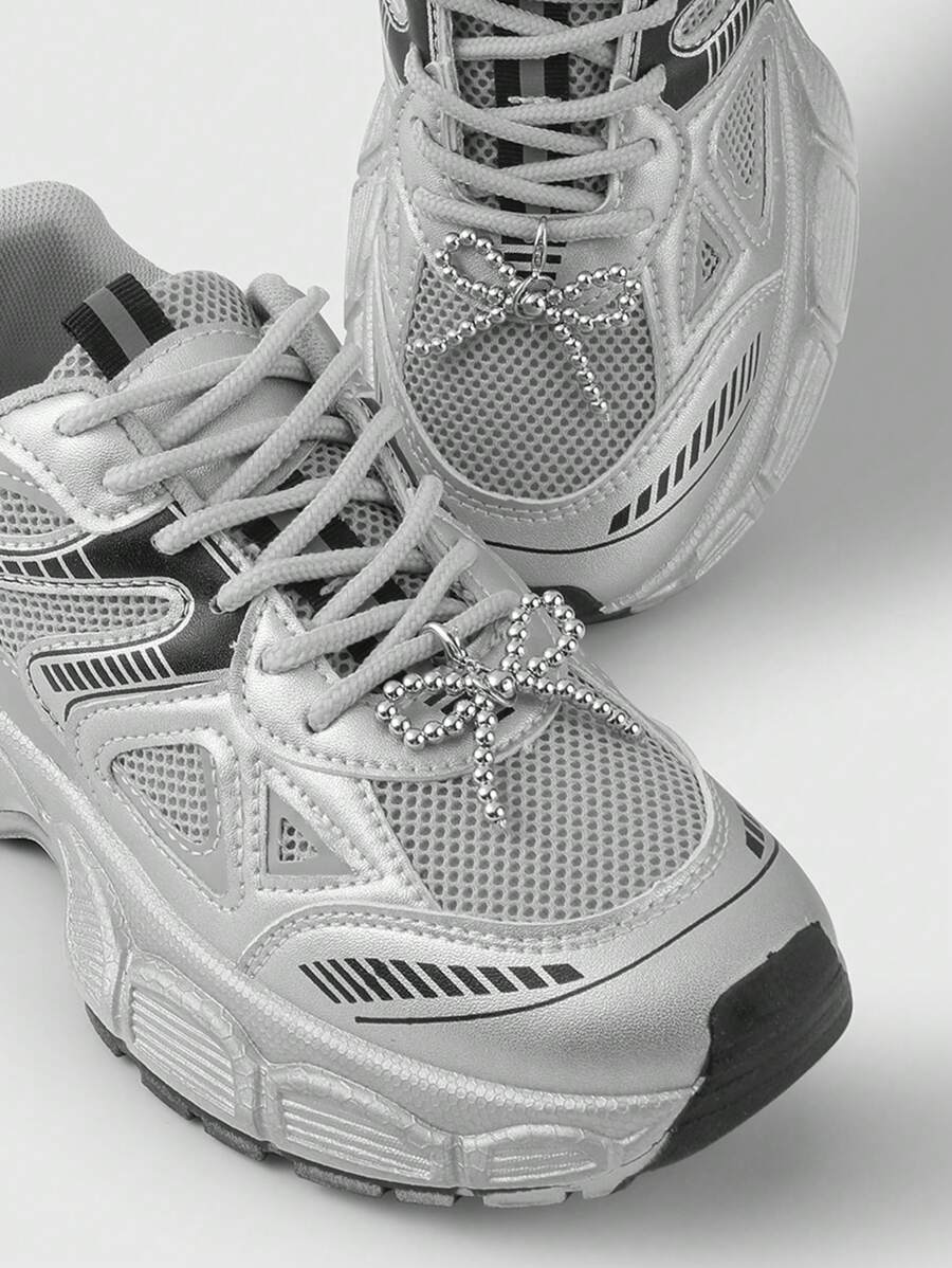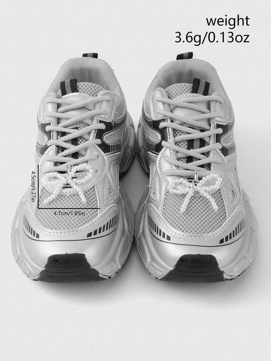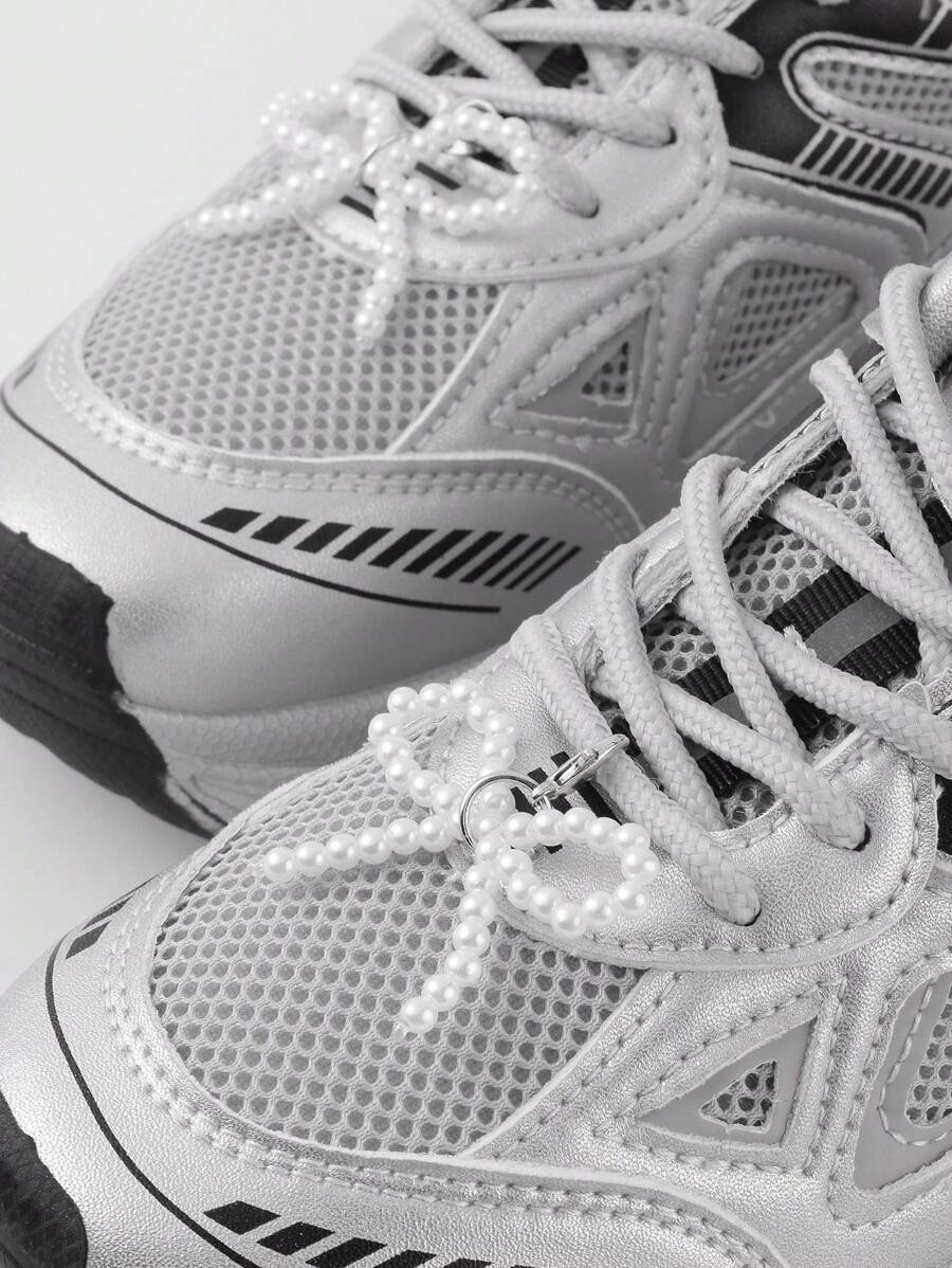 Kawaii 2pcs Y2K Handcrafted Stylish High-Porosity White Faux Pearl, Silver CCB Bowknot, Lobster Clasp Decorative Fashion Shoe Clips Combo Set, Suitable For Women/Girls, Daily Wear & Holiday Gifts