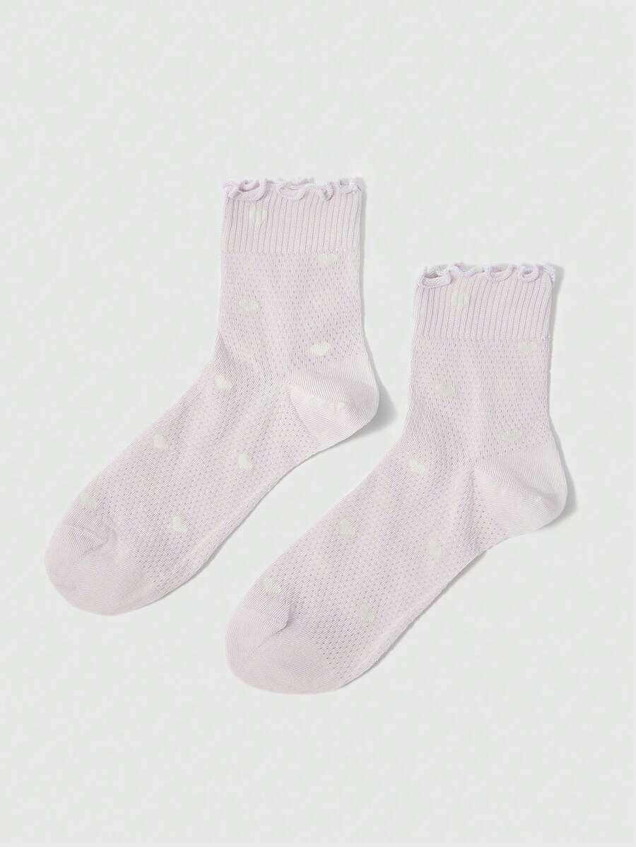 Kawaii 3 Pairs Random Color Lace Trim Mid-Calf Socks, Cute Heart Mesh Socks, College Style Color Blocking Women's Socks, Daily Cartoon Short Mesh Socks