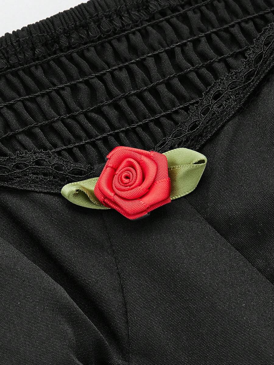 Kawaii 3d Flower & Sweetheart Collar Patchwork Lace Puff Sleeve Dress