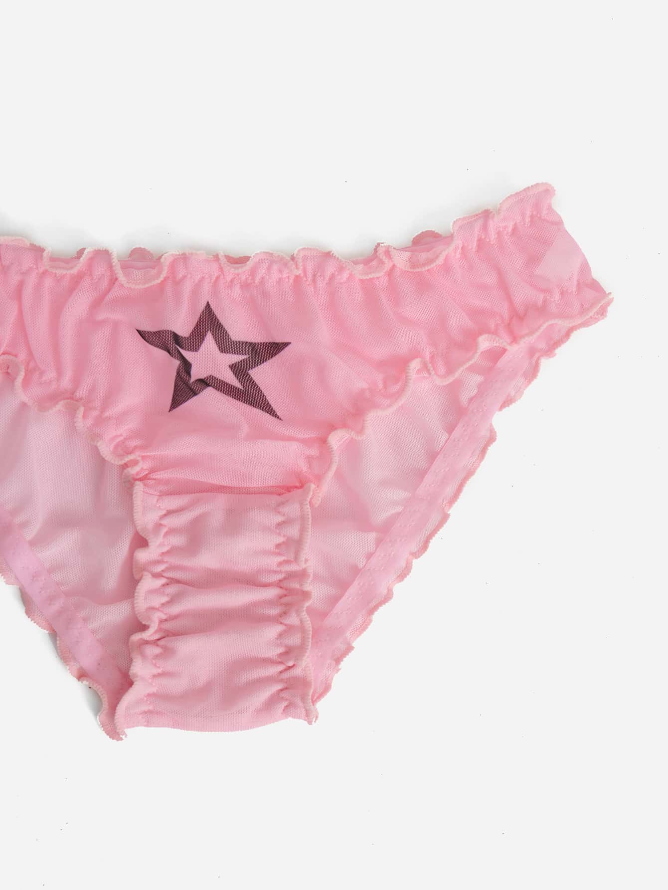 Kawaii 3pack Star & Skull Print Lettuce Trim Mesh Panty Set
