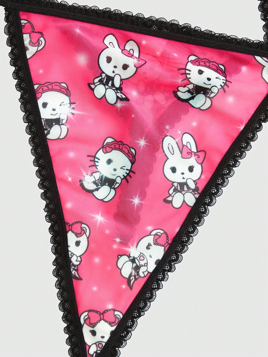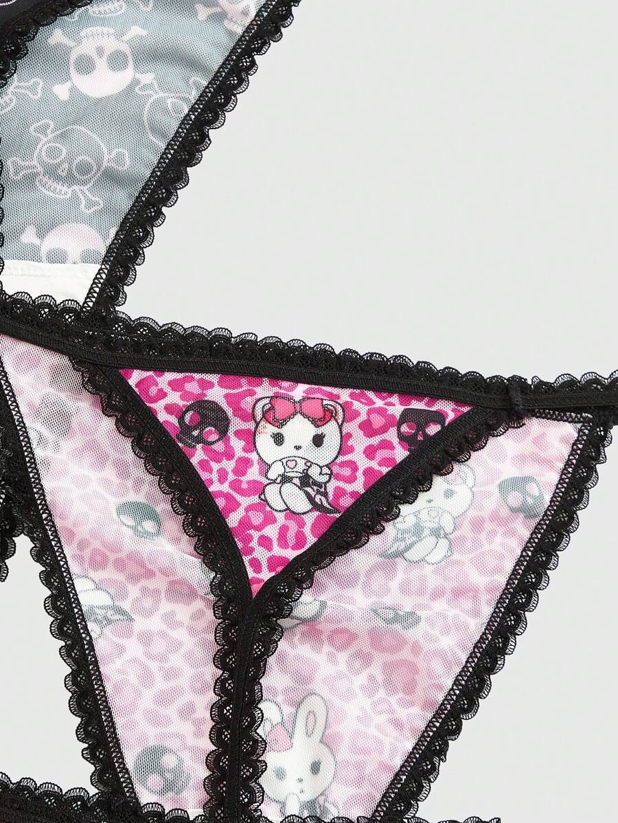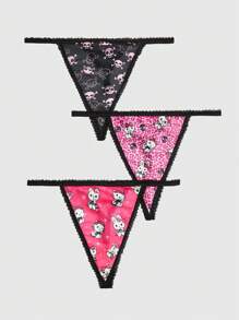 Kawaii 3pcs/Pack Plus Size Lace Trim Leopard Skull Shibuya Print Thong Underwear