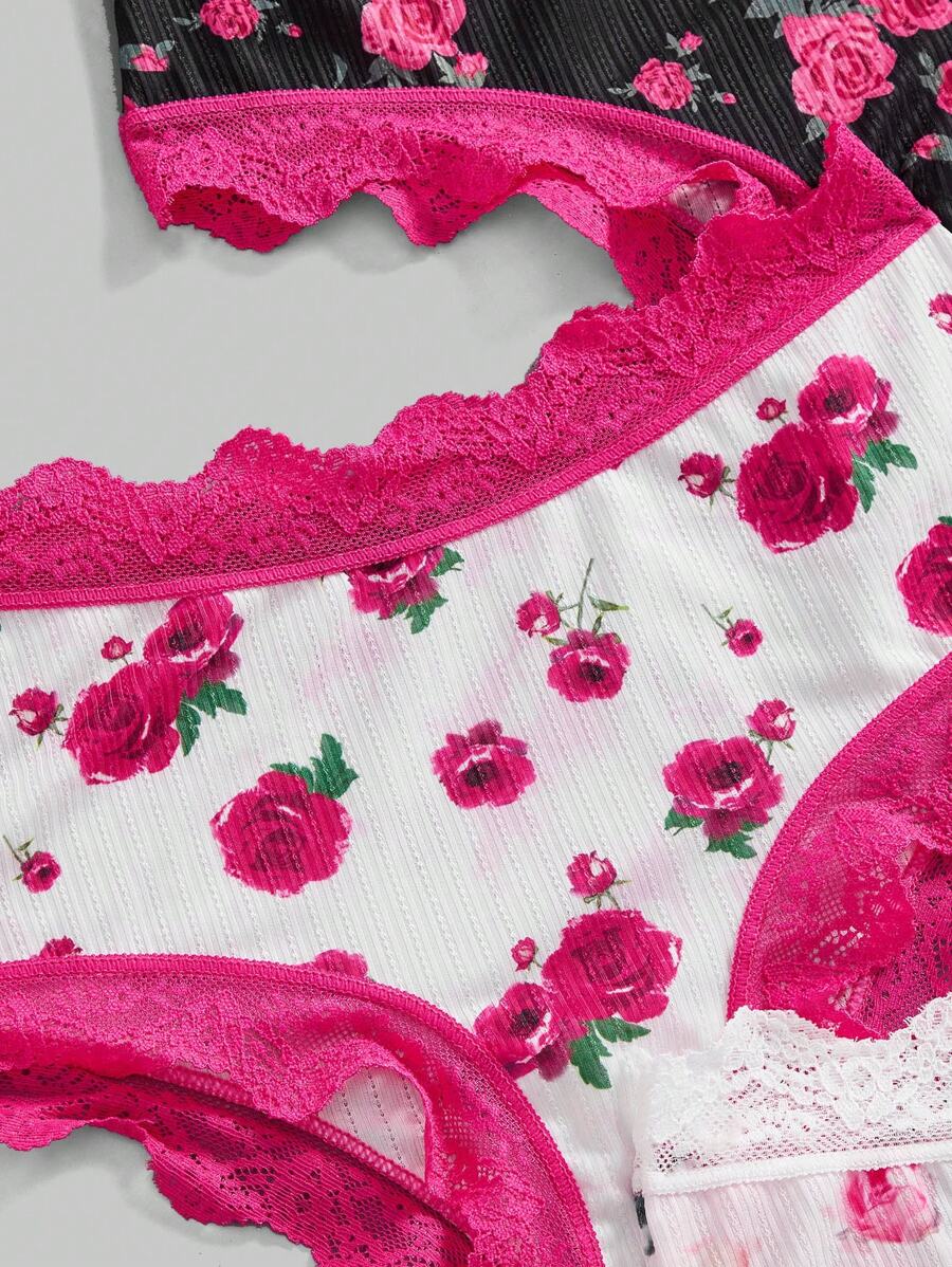 Kawaii 4pcs/Pack Romantic Floral Lace Patchwork Print Panties