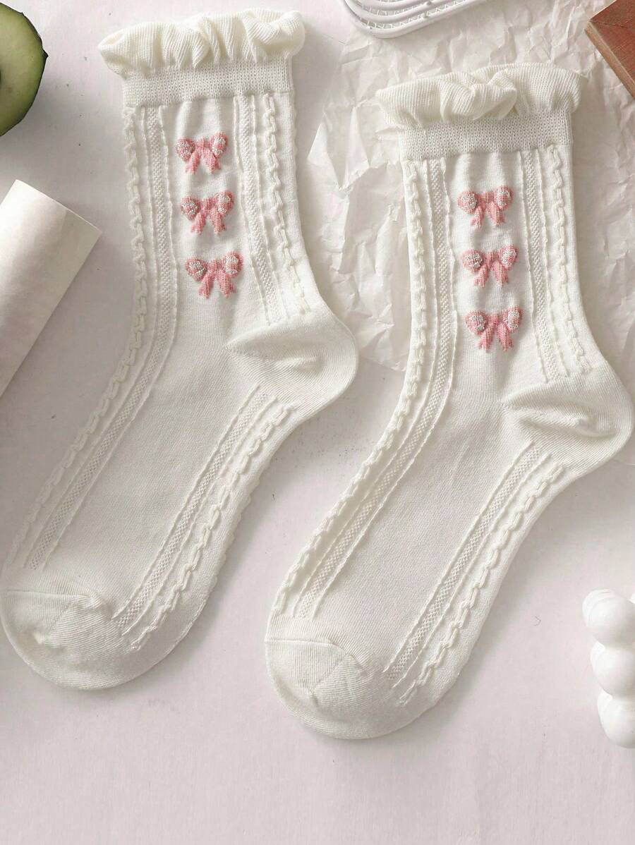 Kawaii 5pairs Women Bow Pattern Crew Socks