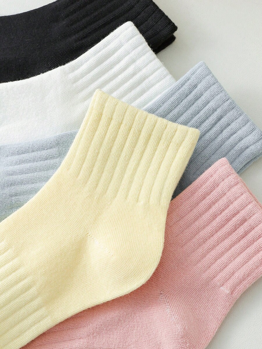 Kawaii 5pairs Women Solid Casual Crew Socks