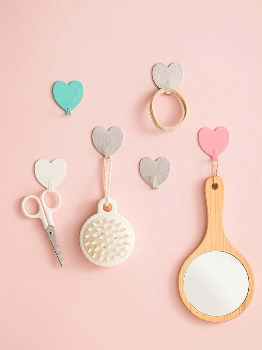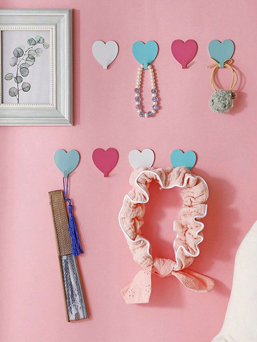 Kawaii 5pcs Random Color Heart-Shaped Wall Hooks