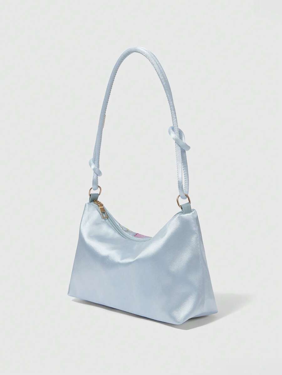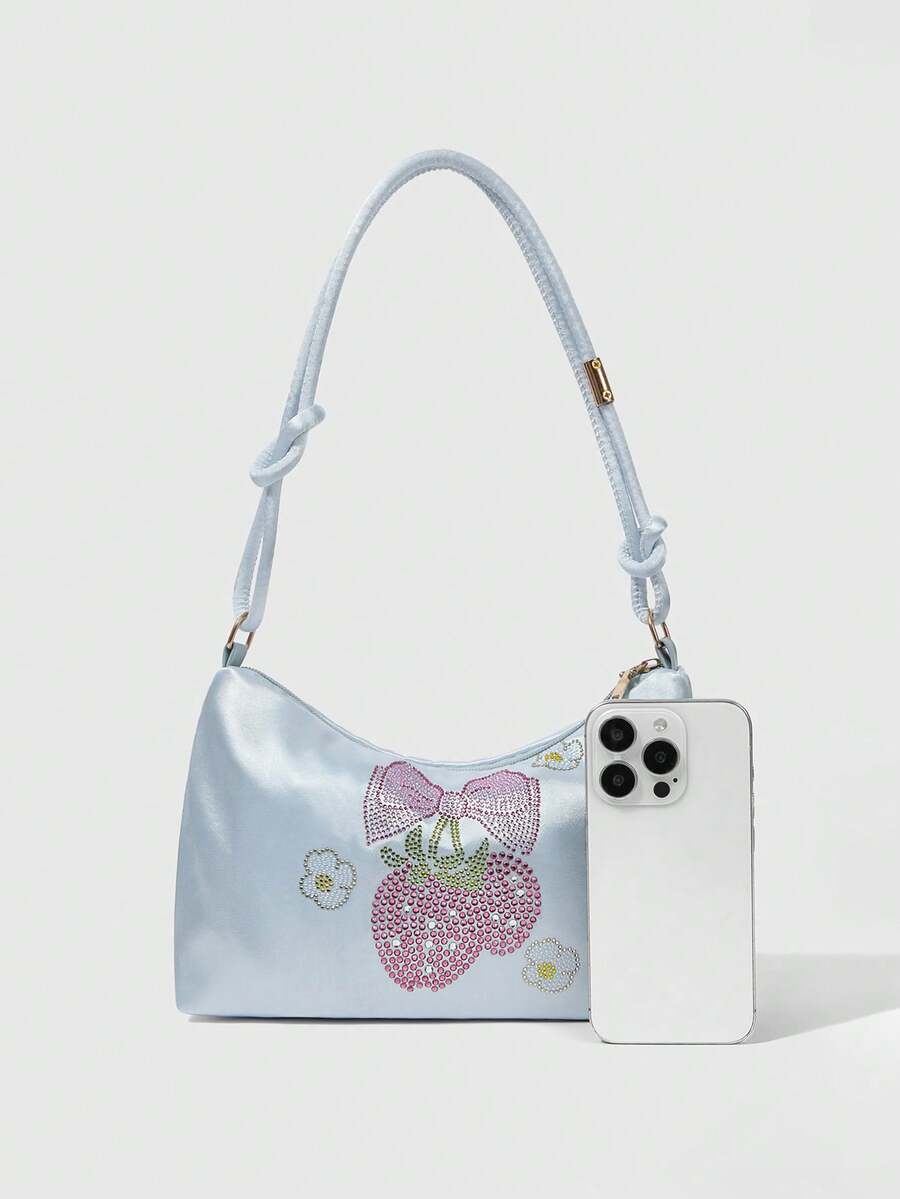 Kawaii A Hot Diamond Cherry Strawberry Floral Shoulder Bag Light Blue Silk Shoulder Bag Cute High-End Tote Versatile Handbag Shoulder Bag Suitable For Back To School Season