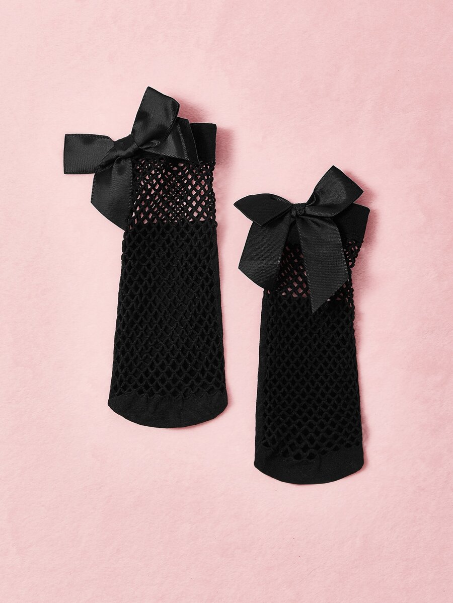 Kawaii Bow Detail Hollow Out Fishnet Socks