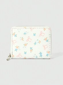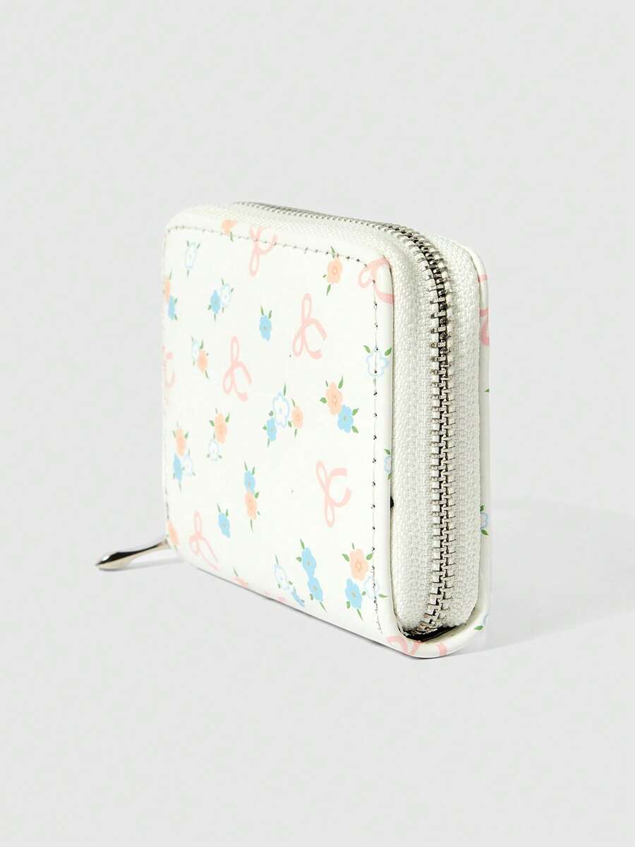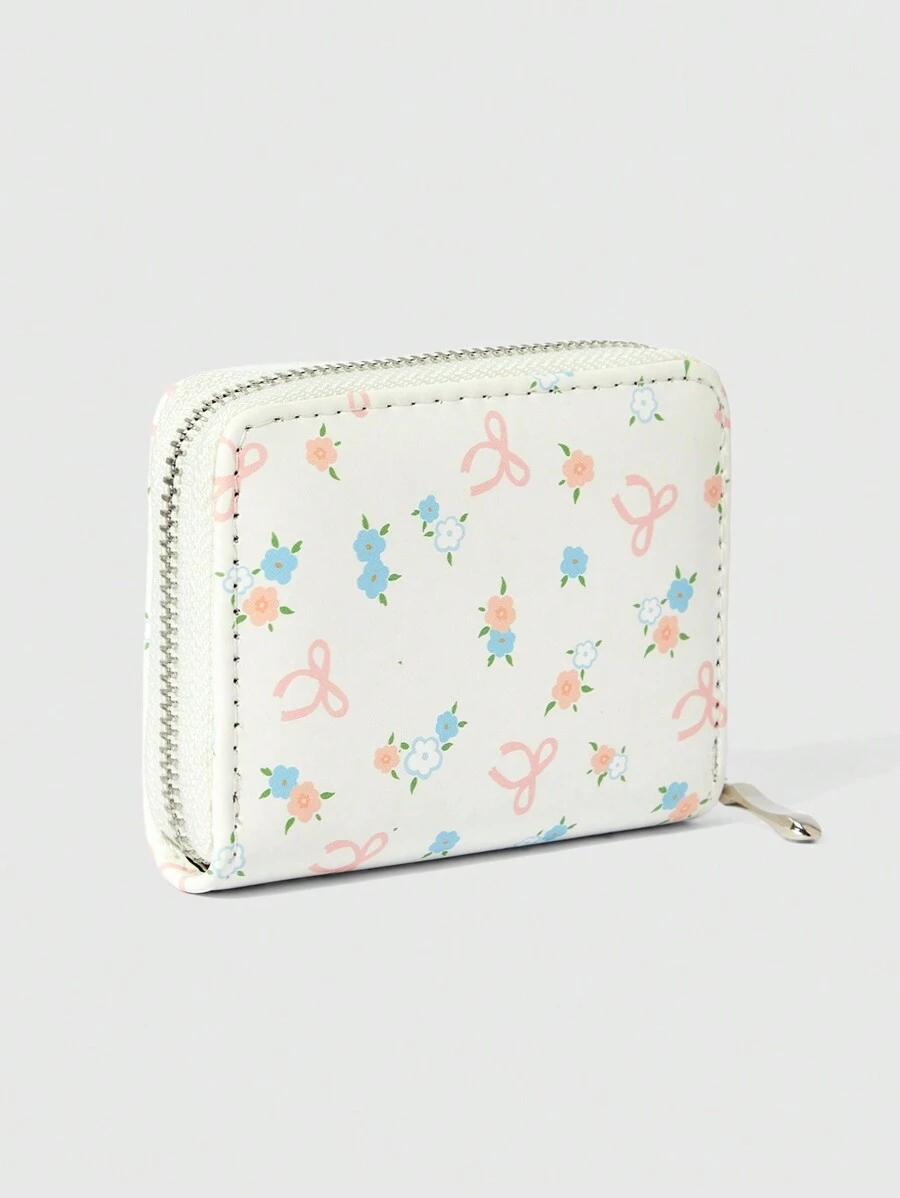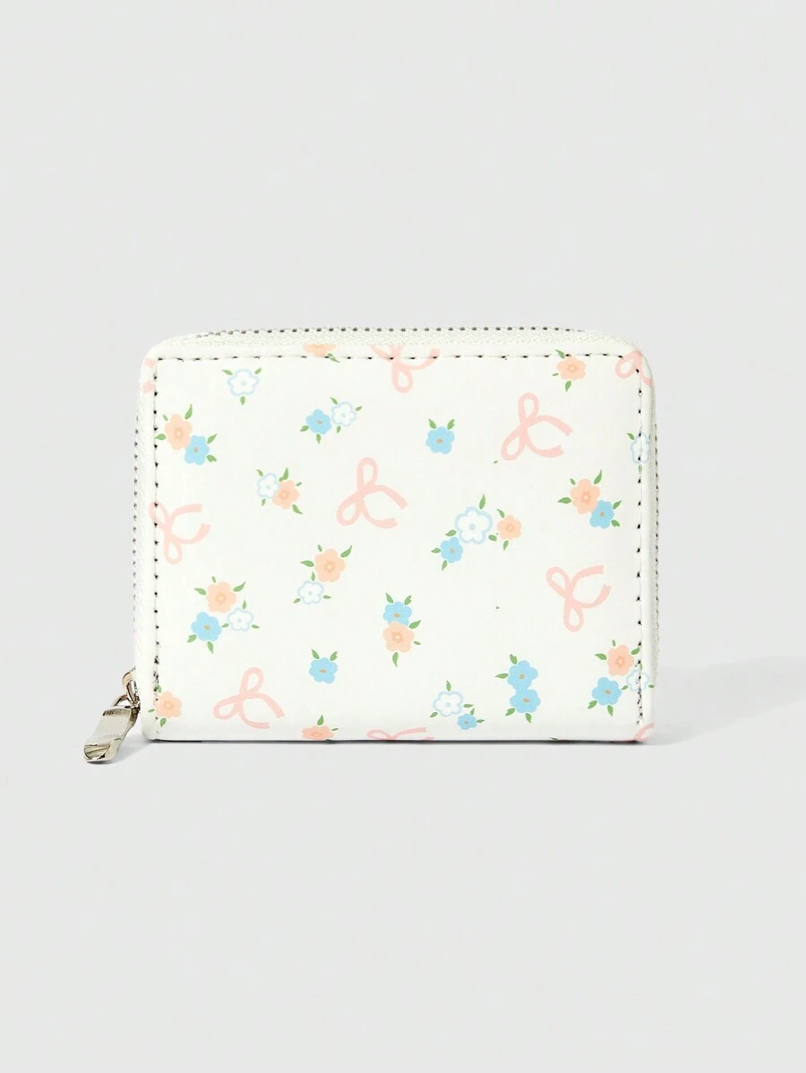 Kawaii Bow Knot & Floral Design Short Wallet, Multi-Functional Card Slots Purse