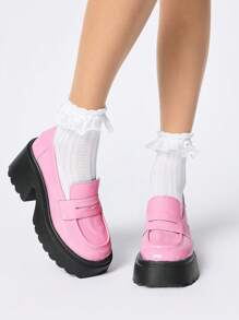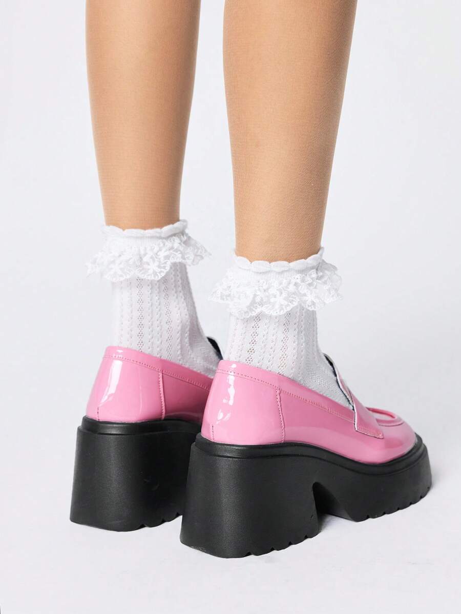 Kawaii British Style Women Platform Loafers, Thick Sole Black Oxford Shoes, Fashionable Chunky Heel, Spring & Autumn