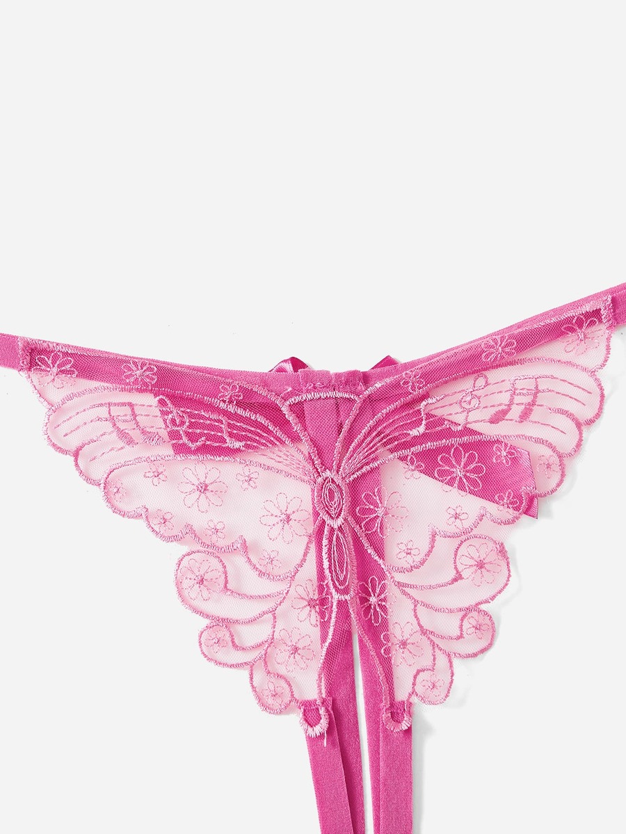 Kawaii Butterfly Embroidery Mesh Thong Lingerie