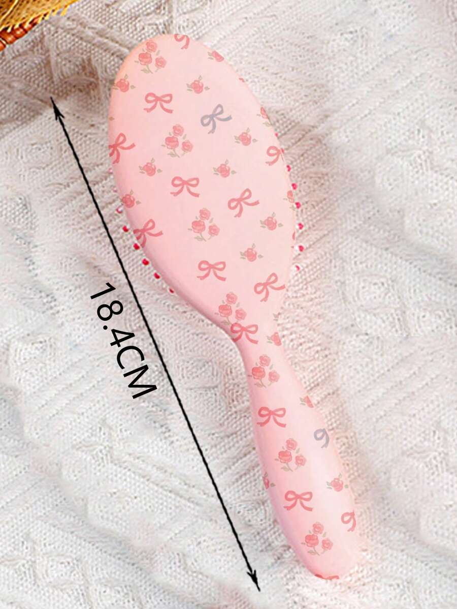 Kawaii Butterfly & Flower Print Scalp Massage Comb, Mini Portable Air Bubble Brush, Cartoon Designed For Children