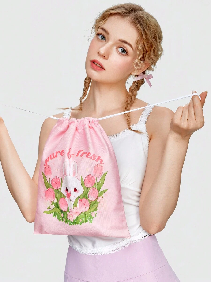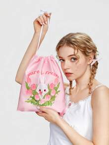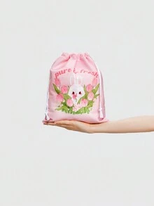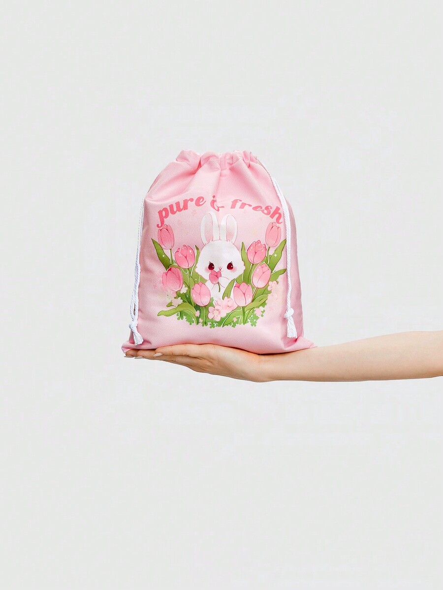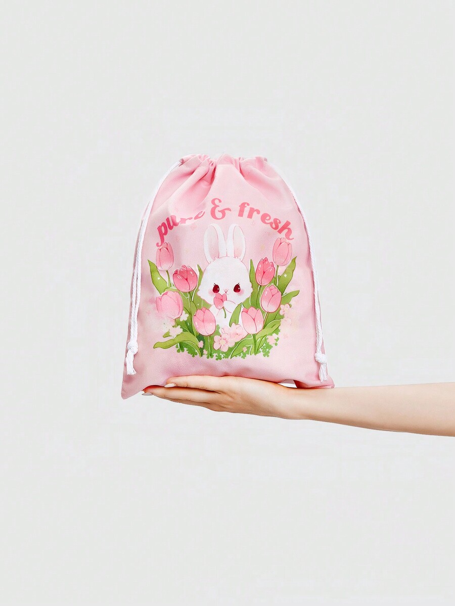 Kawaii Cartoon Bunny Flower Sea Portable Large Capacity Drawstring Cosmetic Bag 308360