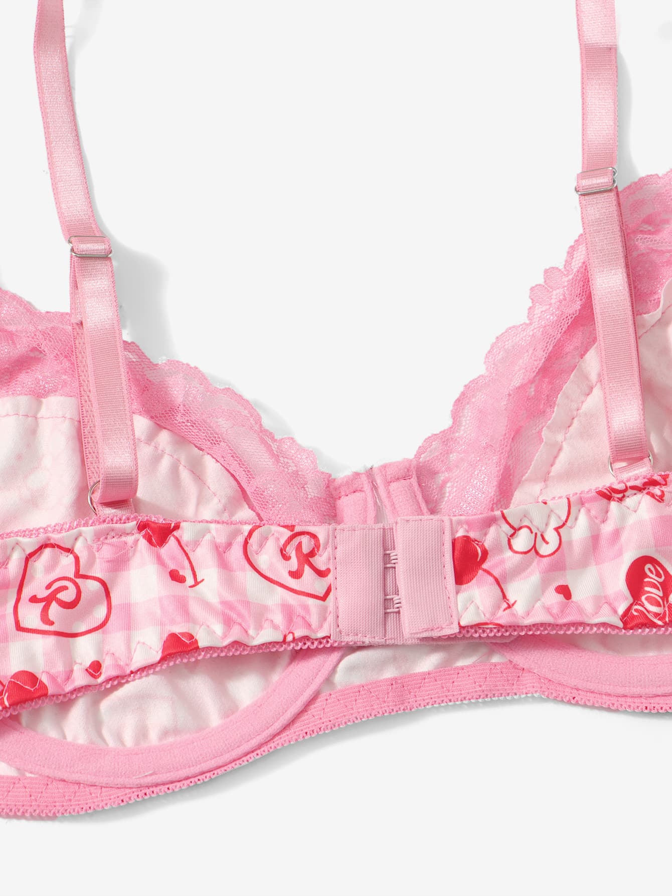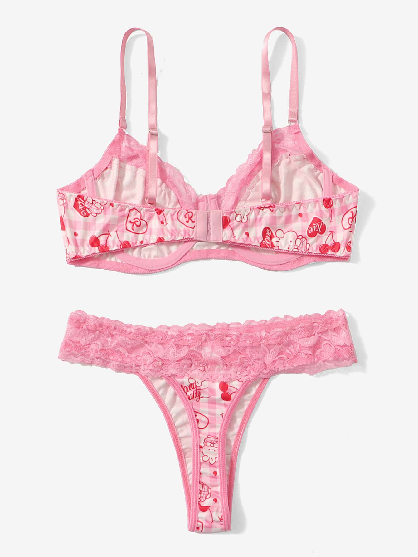 Kawaii Cartoon Graphic Contrast Lace Lingerie Set