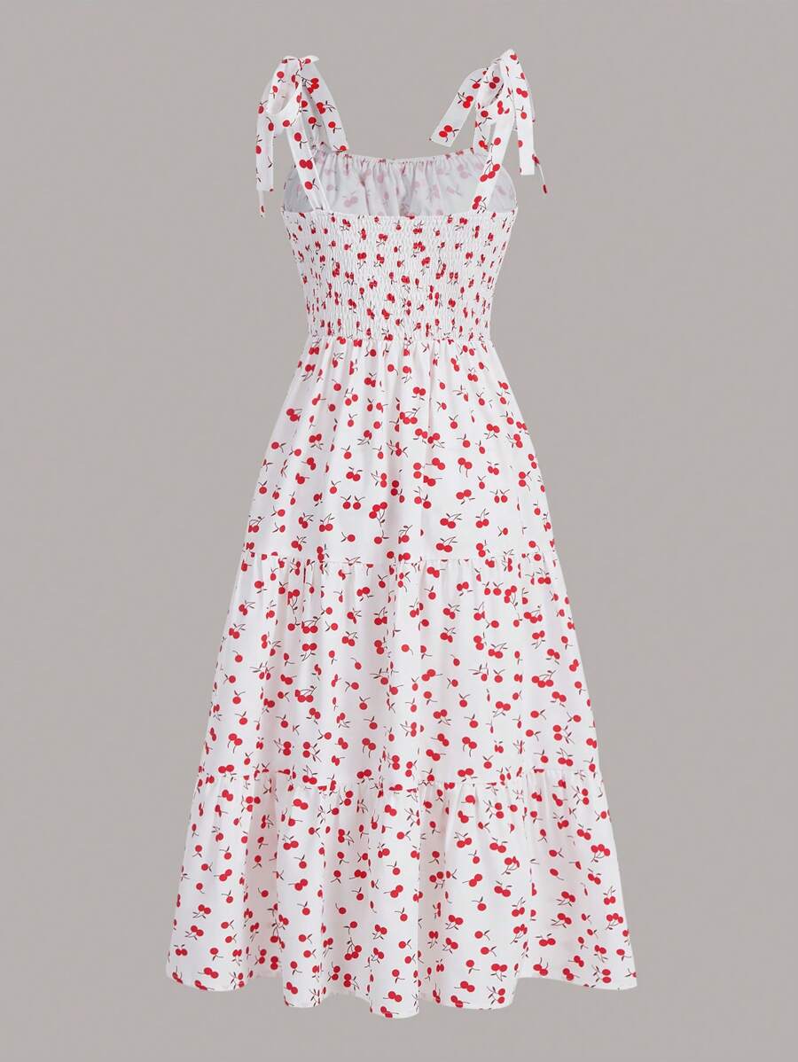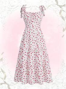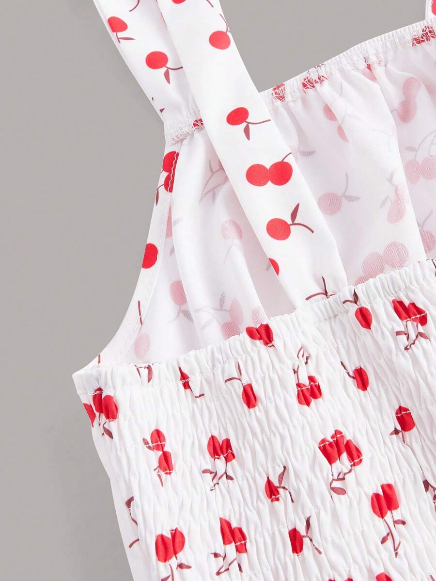 Kawaii Cherry Print Tie Shoulder Cami Dress