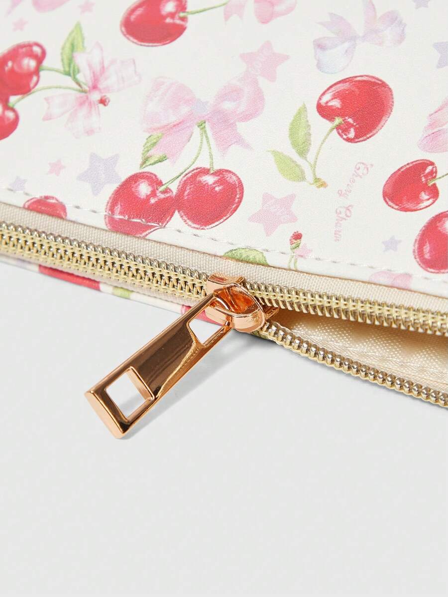 Kawaii Cherry Printed T-Shaped Portable Cosmetic Bag For Storage