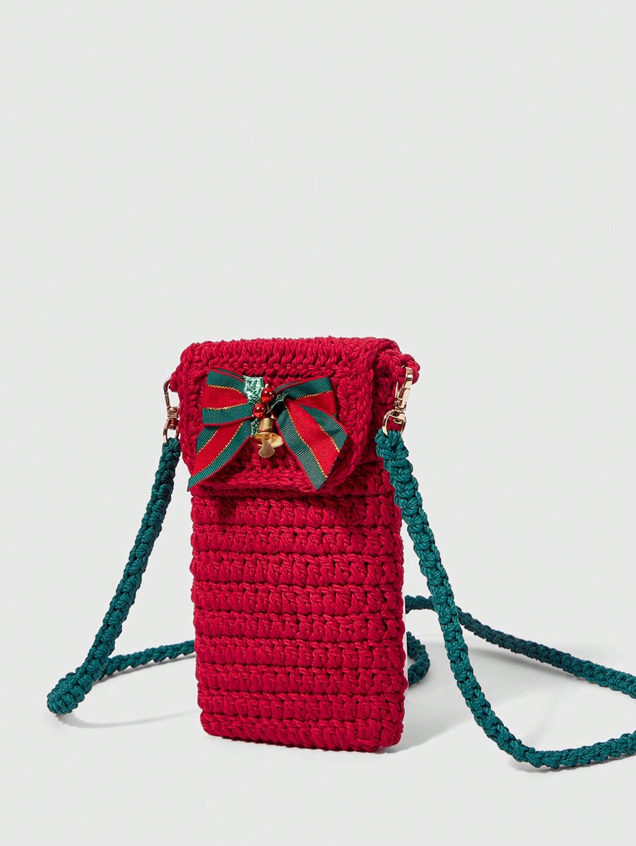 Kawaii Christmas Bow Decor Handmade Crochet Sling Bag