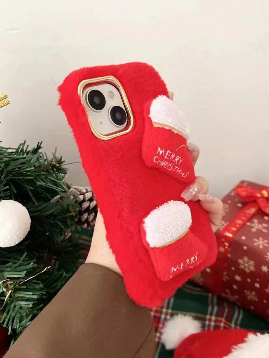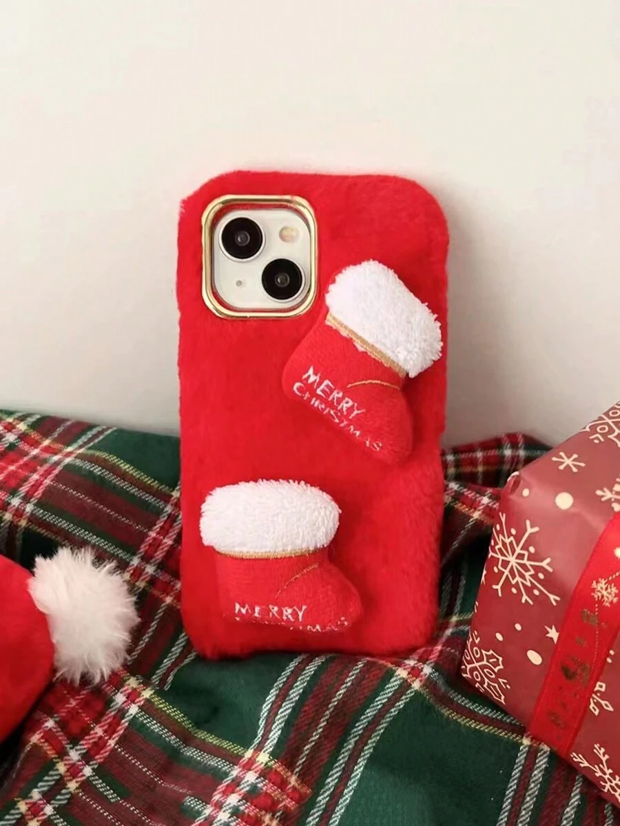 Kawaii Christmas Themed Christmas Stocking Plush Mobile Phone Case Compatible With iphone11, 12, 13 Series And Other Mobile Phone Case Protective Covers