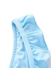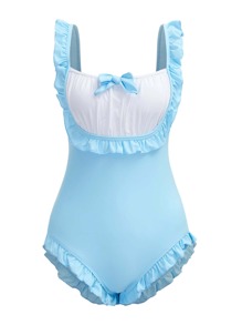 Kawaii Colorblock Bow Front Frill One Piece Swimsuit