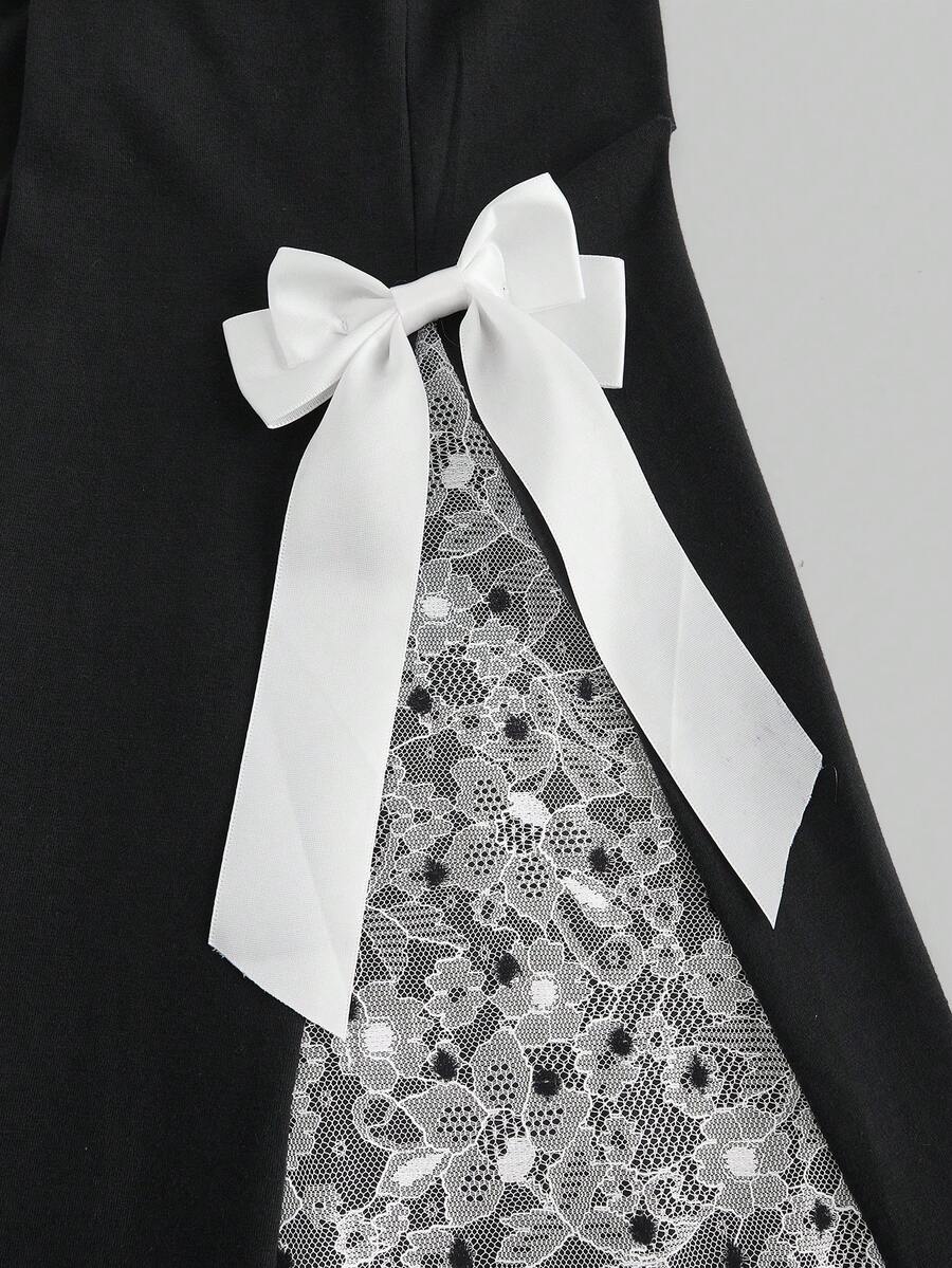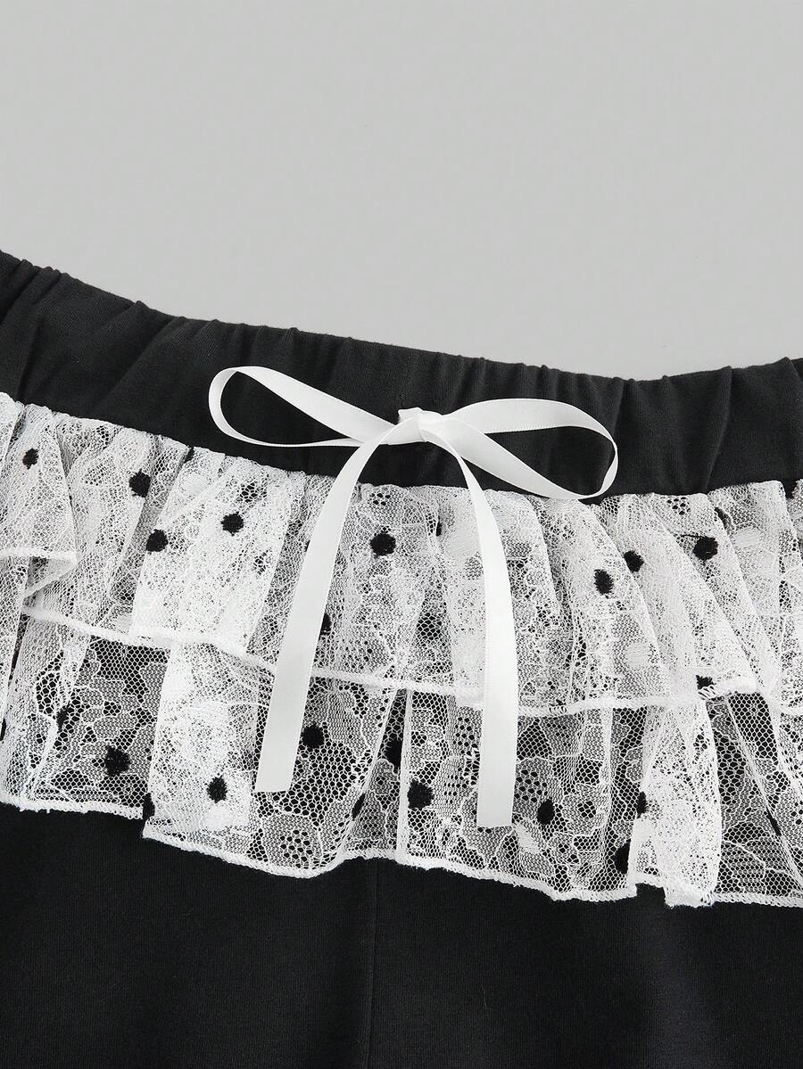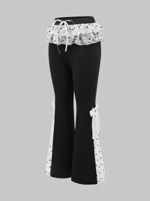 Kawaii Contrast Color Polka Dot Lace Contrast Bow Decor Flared Pants