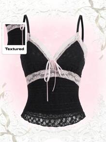 Kawaii Contrast Lace Tie Front Cami Top, School