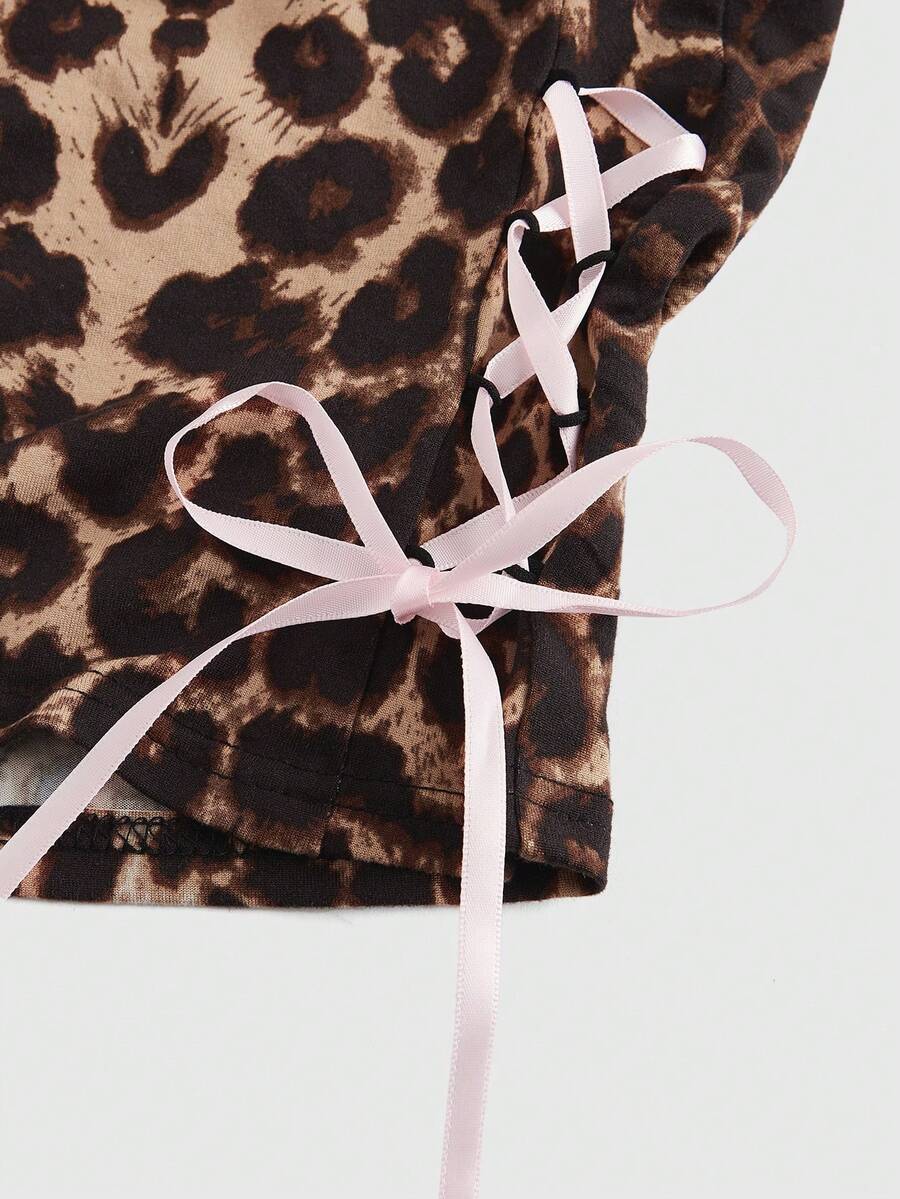 Kawaii Cute Bow Embroidery Tie Waist Off-Shoulder Fitted Women T-Shirt