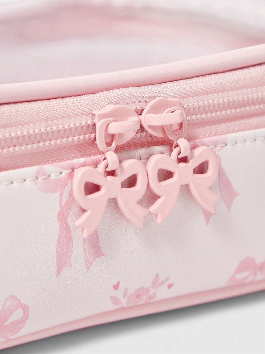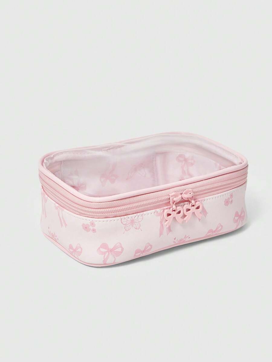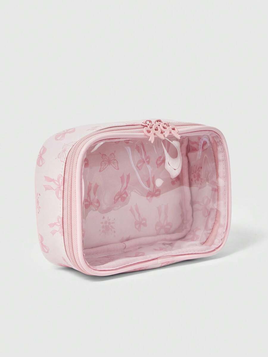 Kawaii Cute Butterfly Print Transparent Splicing Makeup Bag, Square Portable Toiletry Organizer Bag, Item NO. 1085369