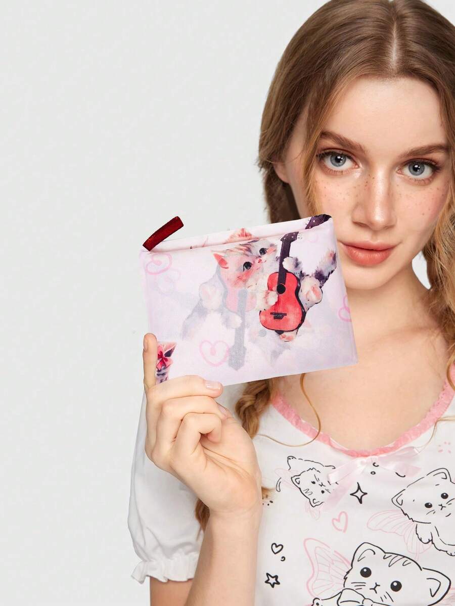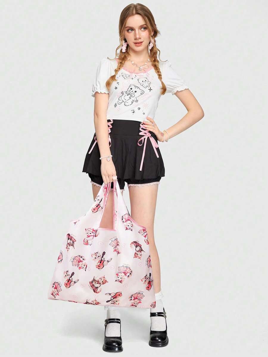 Kawaii Cute Cartoon Cat Patter Large Capacity Foldable Tote Shopping Bag With Coin Purse, Item No. 848303