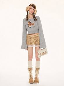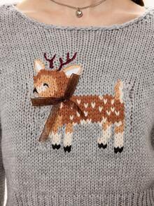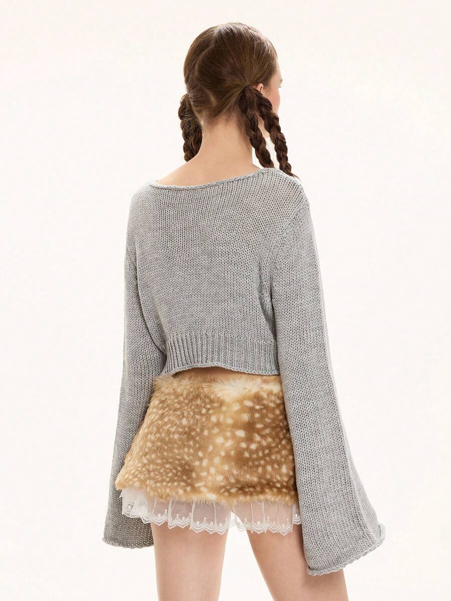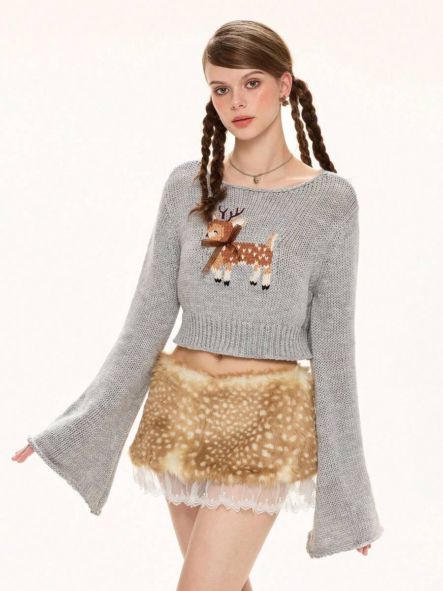 Kawaii Cute Crocheted Deer Short Flare Sleeve Women Knitted Sweater
